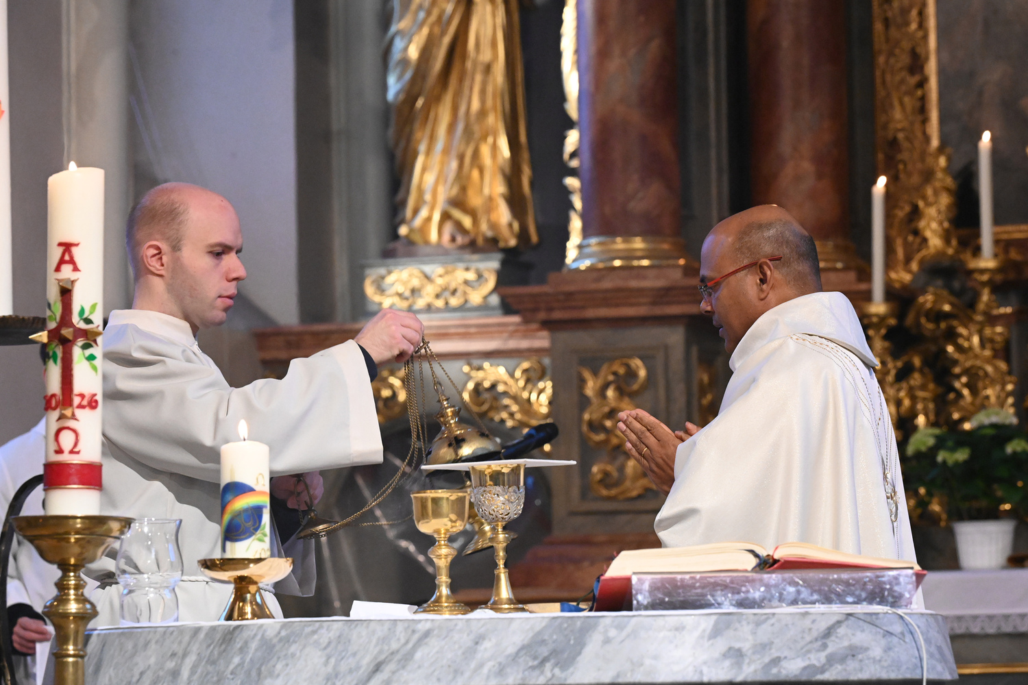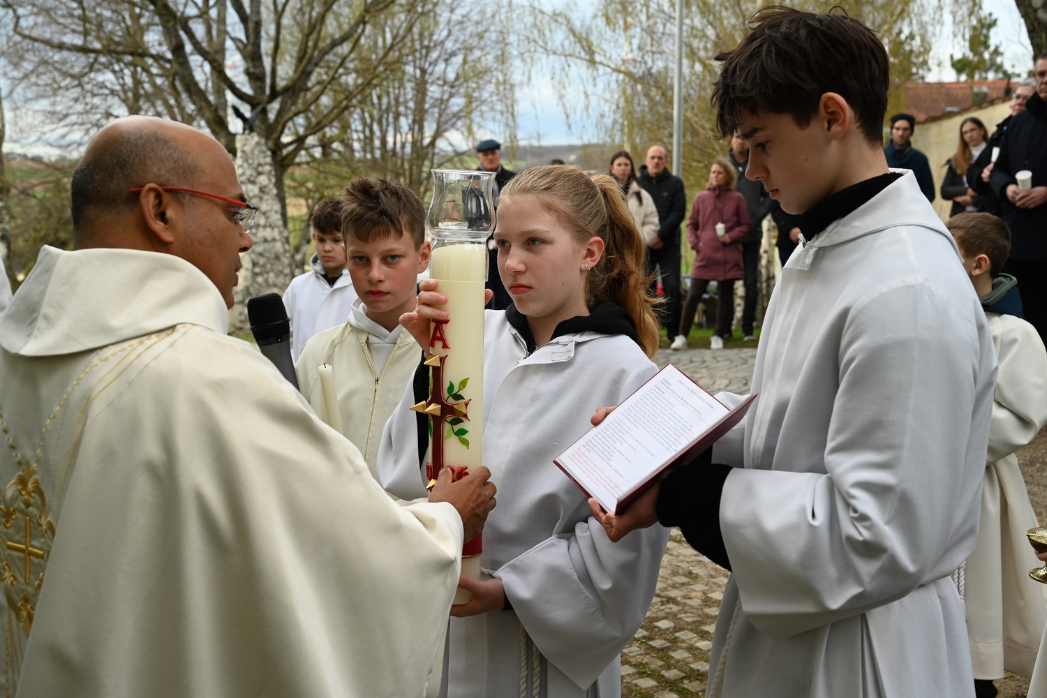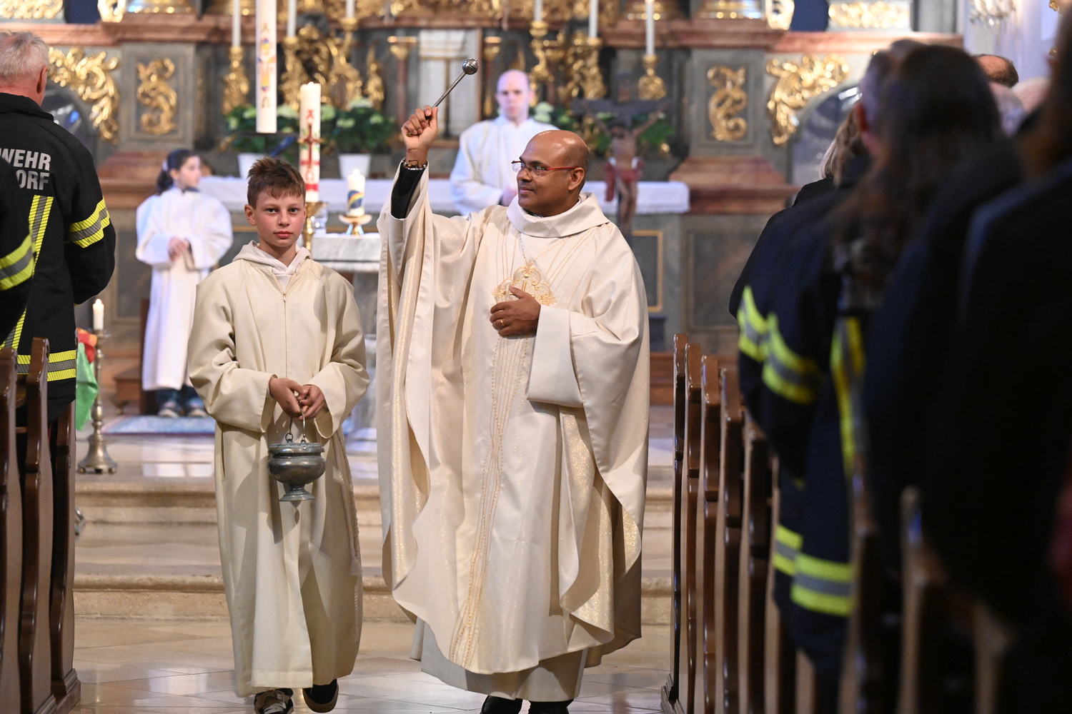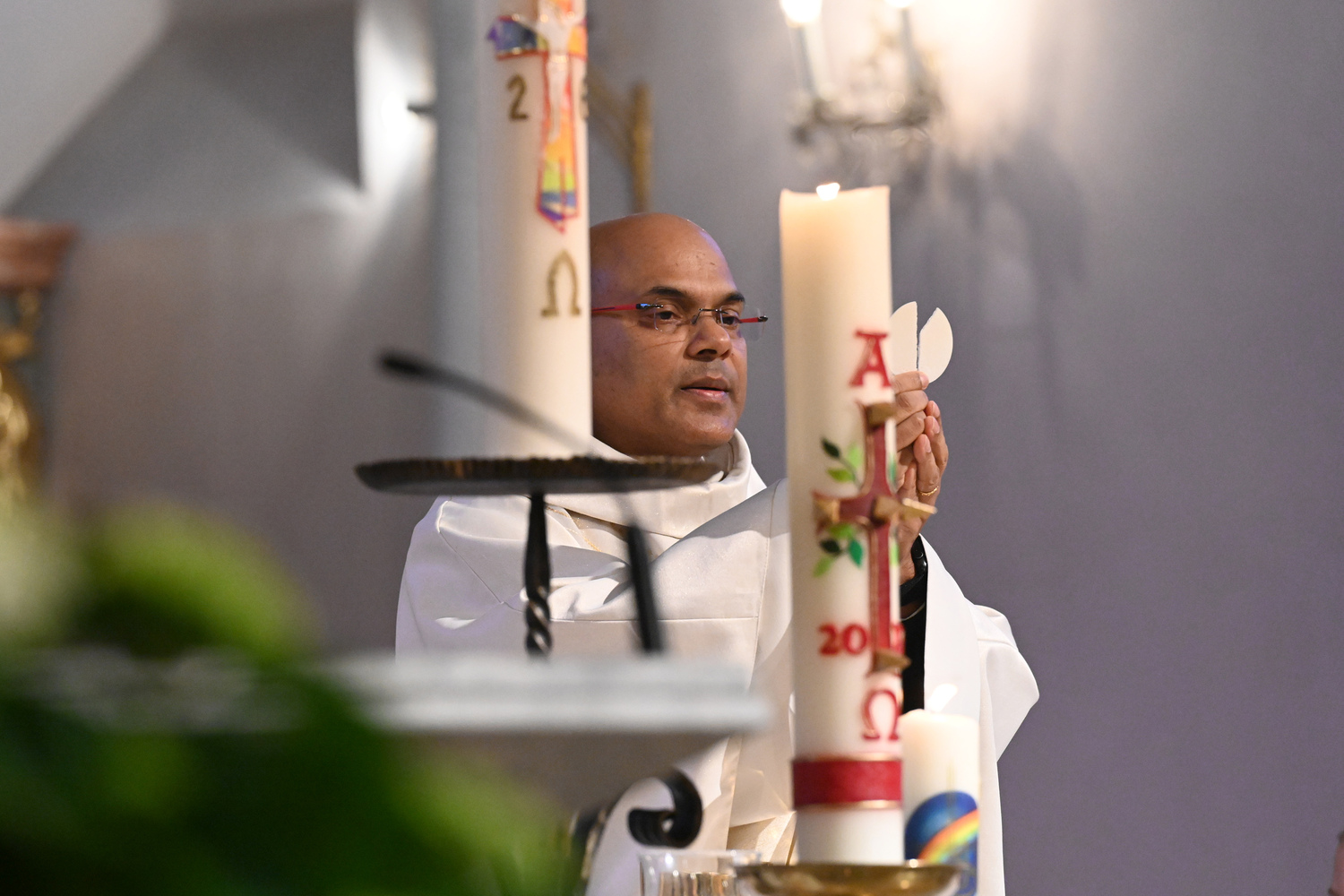 Eindrücke von der gemeinsamen Osternachtsfeier der Pfarren Gnadendorf und Wenzersdorf in der Kirche in Gnadendorf.