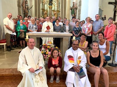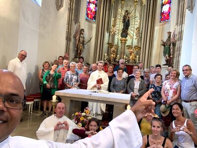 Am Samstag, 4. Juli 2020, war um 8 Uhr Abmarsch für die Fußwallfahrer in Michelstetten. Der Weg führte hinauf zum Buschberg zum Gipfelkreuz und dann weiter Richtung Oberleis zur Wallfahrtskirche, wo dann um 11 Uhr eine gemeinsame Dank- und Bittmesse gefeiert wurde.