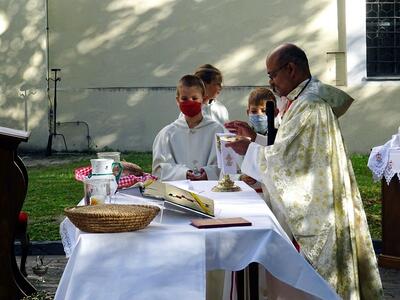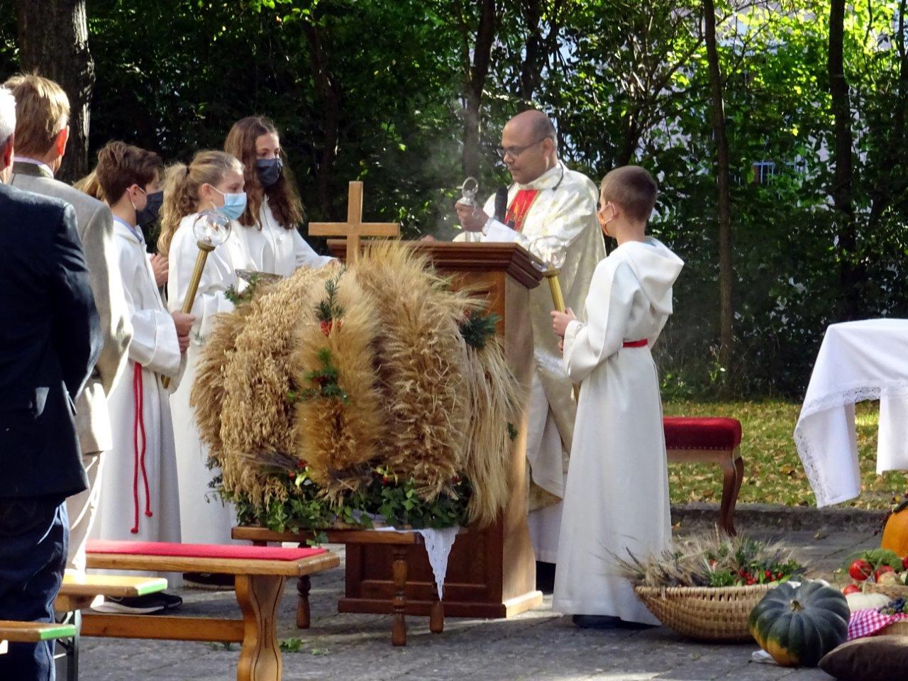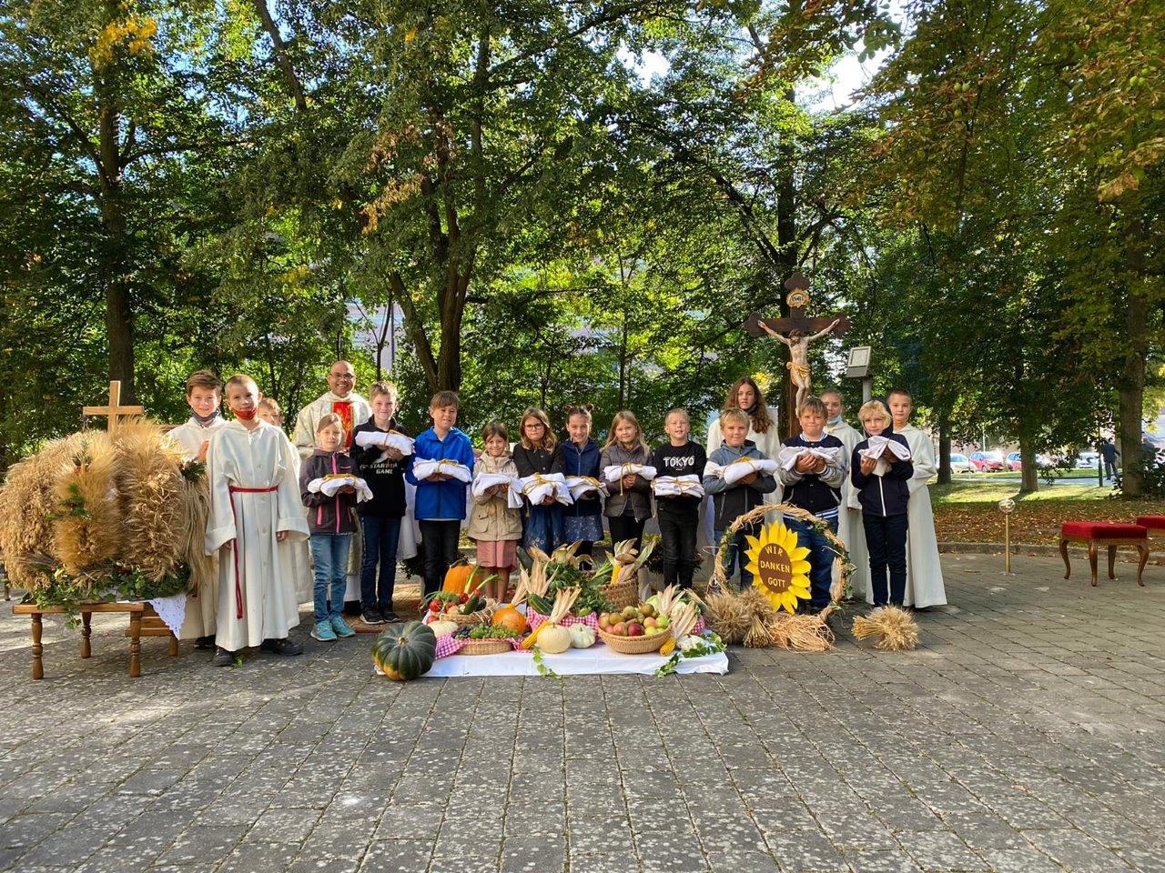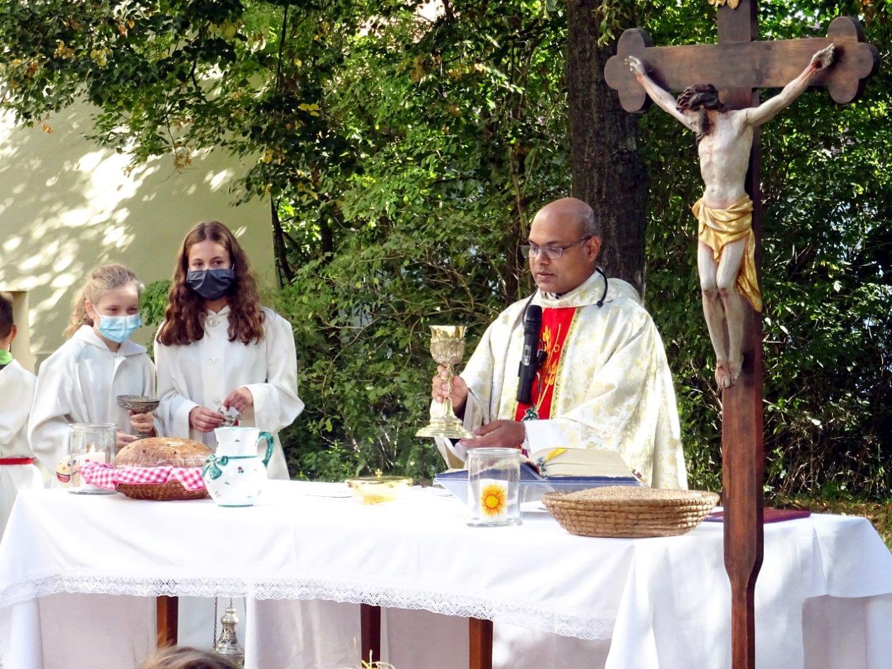 Im Rahmen des diesjährigen Erntedankfestes wurden von Pater Nicholas Thenammakkal auch die Übergabe der Kutten an die heurigen Erstkommunionkinder durchgeführt.