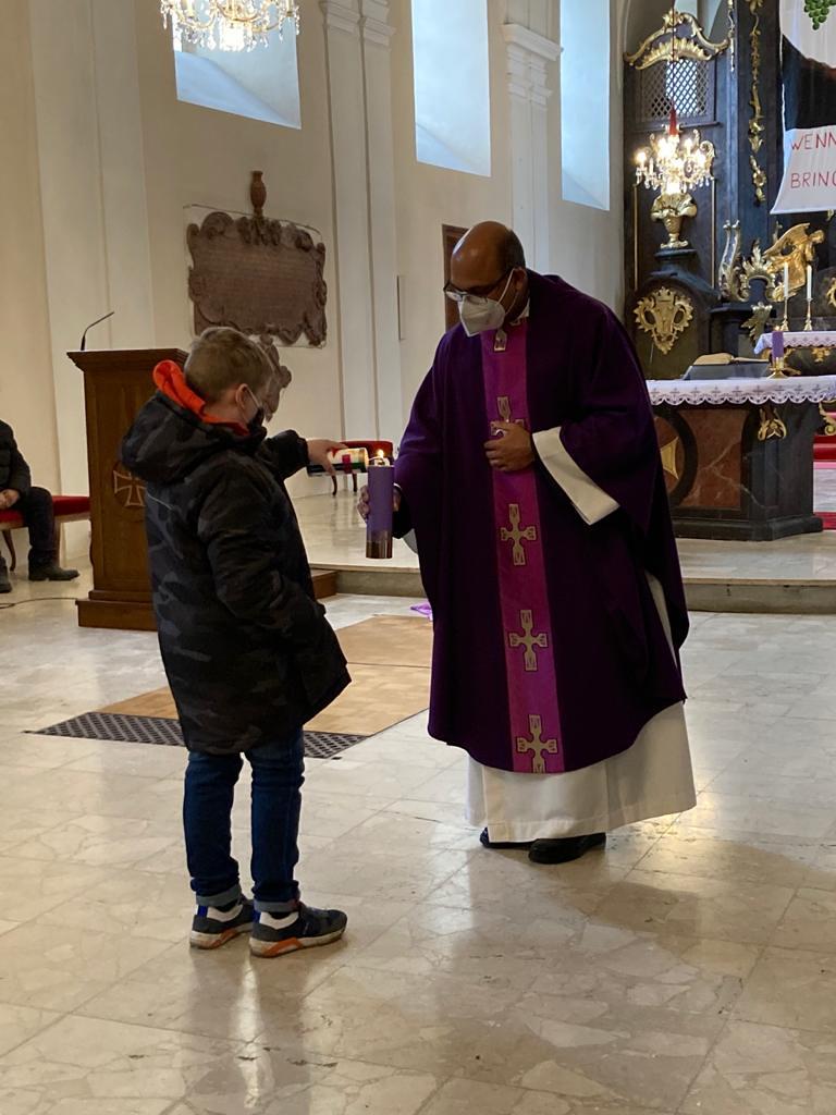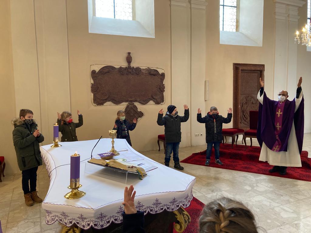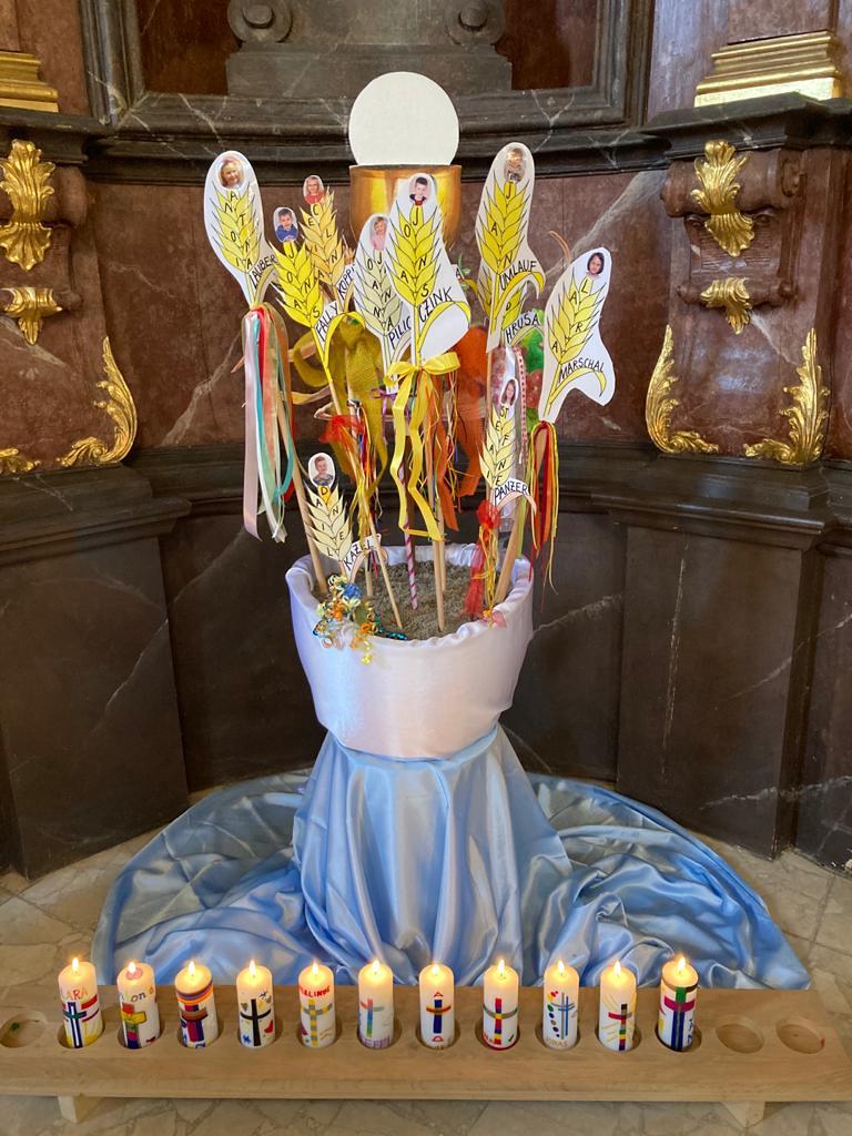 Im Rahmen der Sonntagsmesse fand auch die Vorstellung der heurigen Erstkommunionkinder in Asparn/Zaya statt.