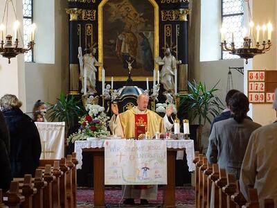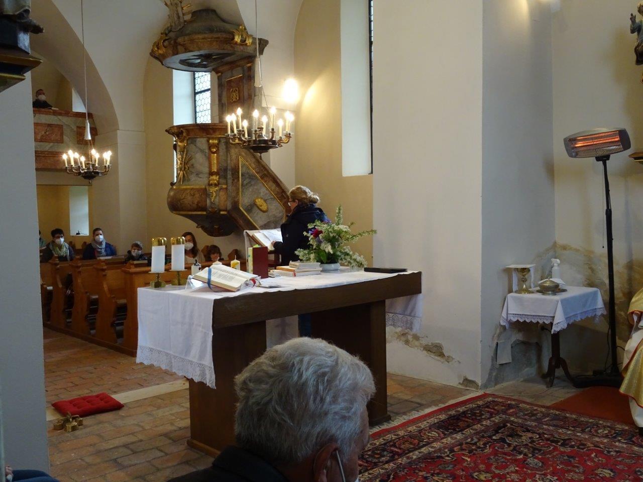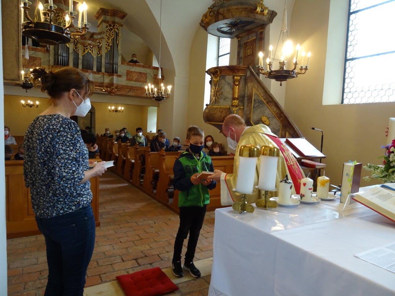 Pater Liviu überreichte in der Pfarrkirche in Ameis Bibeln an die heurigen Erstkommunionkinder.
