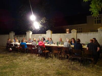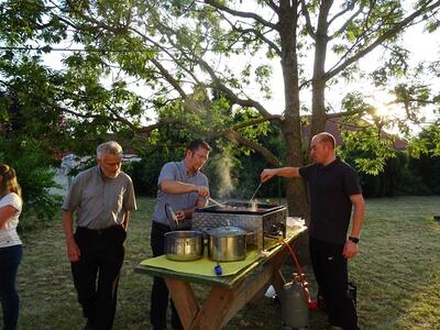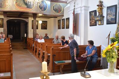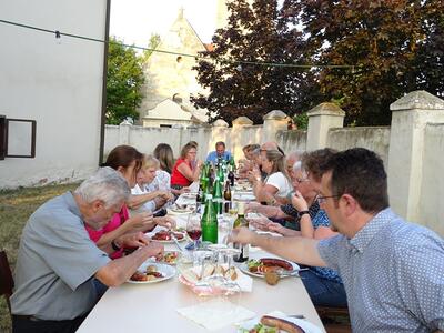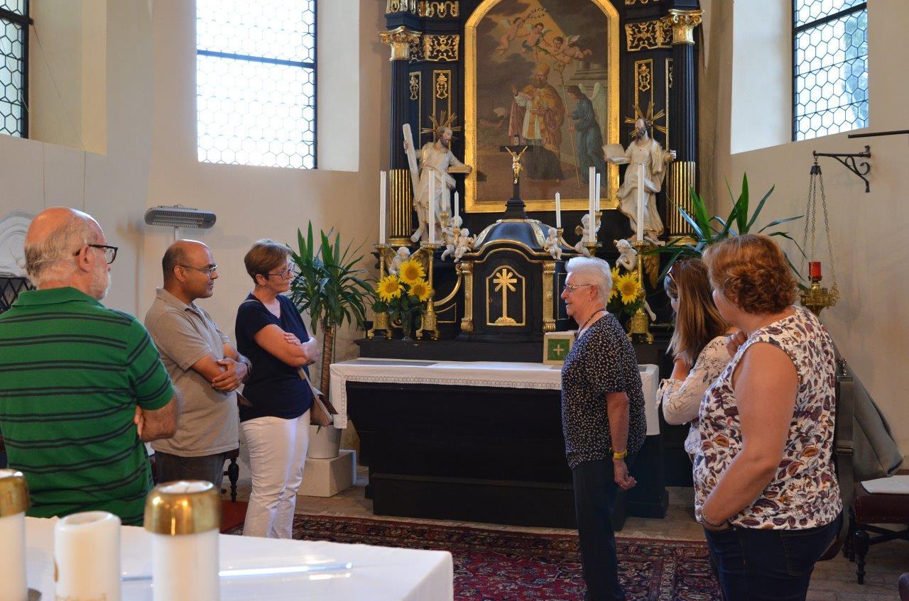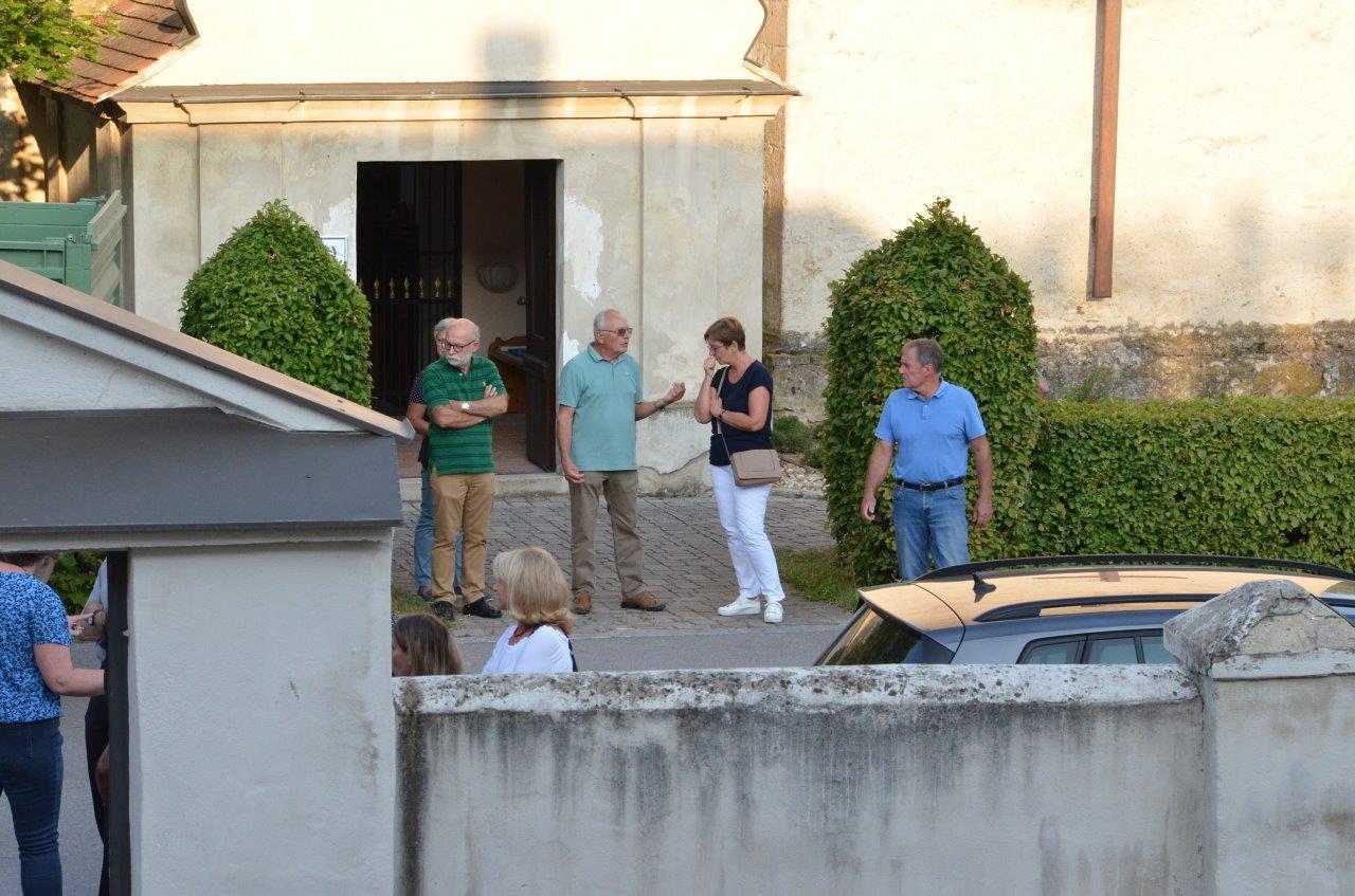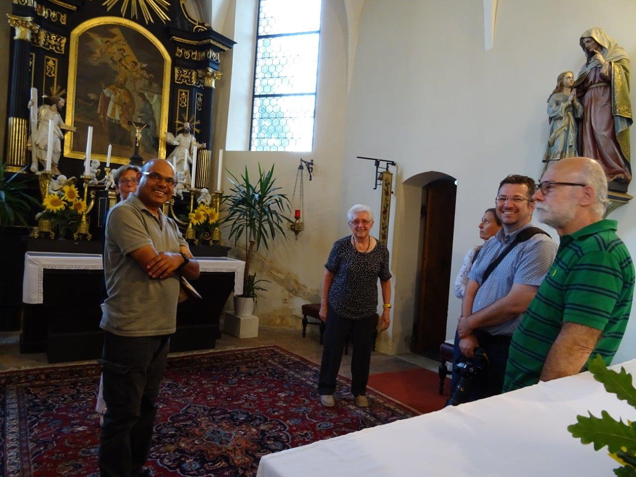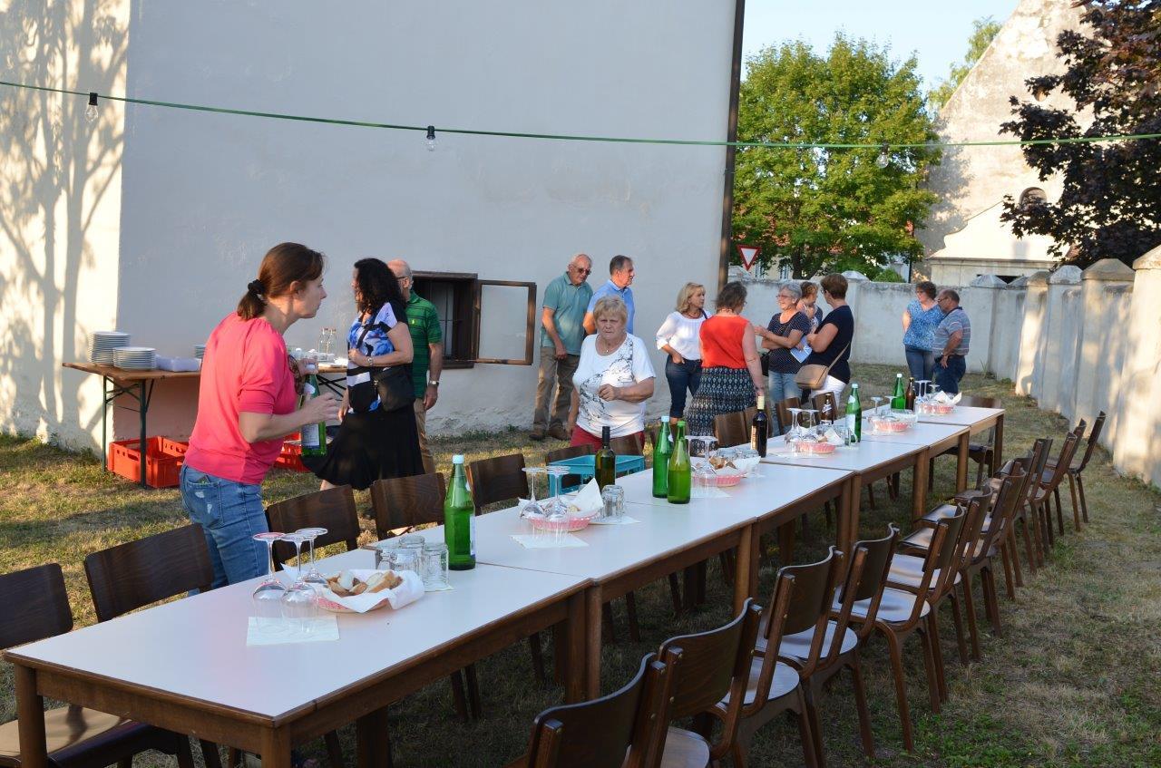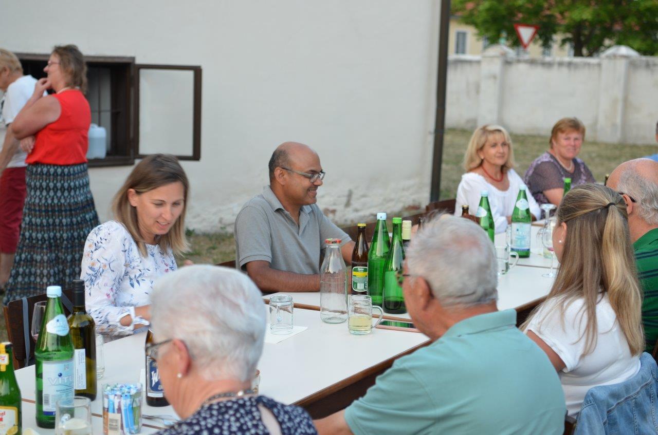 Pfarrer Nicholas Thenammakkal und seine Mitbrüder luden zur Grillfeier die Pfarrgemeinde- und Vermögensverwaltungsräte des Pfarrverbandes Minoriten Weinviertel ein. Aus jeder Pfarre kamen Personen zur Kirchenbesichtigung nach Föllim und Ameis. Anschließend fand ein gemütliches Beisammensein im Pfarrhofgarten statt.