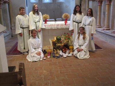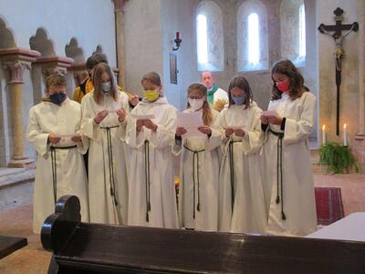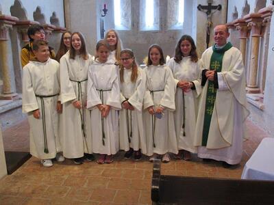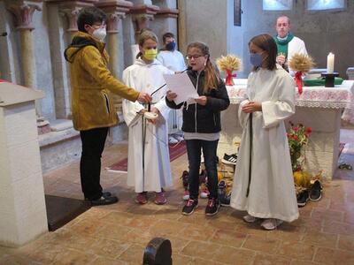 Pater Liviu hob mit treffenden Worten den Dienst am Altar hervor. Auch wenn die Ministrantengruppe zur Zeit wieder etwas kleiner wurde, freut man sich über den Neuzugang von Marlene. Diese wurde von Yanic, Verena, Kathi, Sabine und Christina in deren Gruppe gerne aufgenommen.