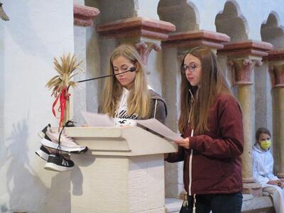 Ihre "Schuhe vom Ministrantendienst wörtlich "an den Nagel gehängt" haben nach mehreren Jahren ihres dabeiseins Anna, Hanna und Stefan. Für deren Dienst bedankte sich Pater Liviu recht herzlich und sprach ebenso eine Bitte aus: "Ich würde mich freuen, euch trotzdem weiterhin in der Kirche zu sehen."