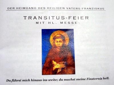 Der 3. Oktober ist für die ganze franziskanische Familie der Tag, andem sie den Heimgang Ihres Ordensgründers, des heiligen Franziskus von Assisi, feiert.