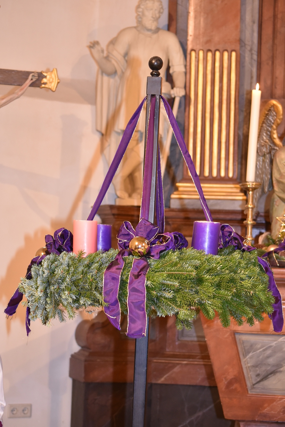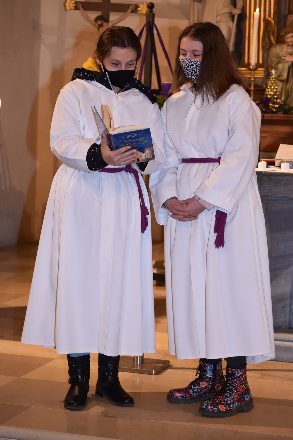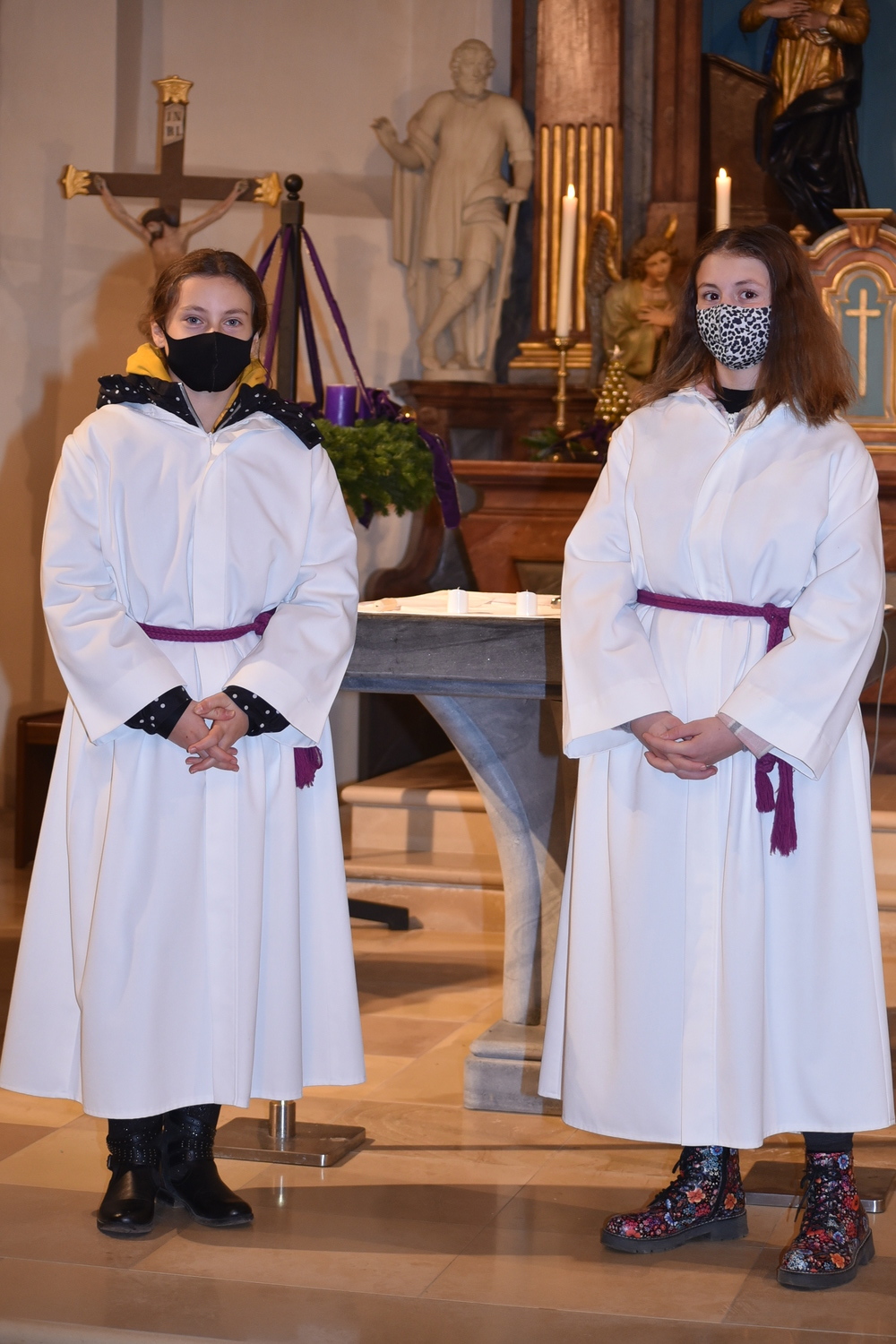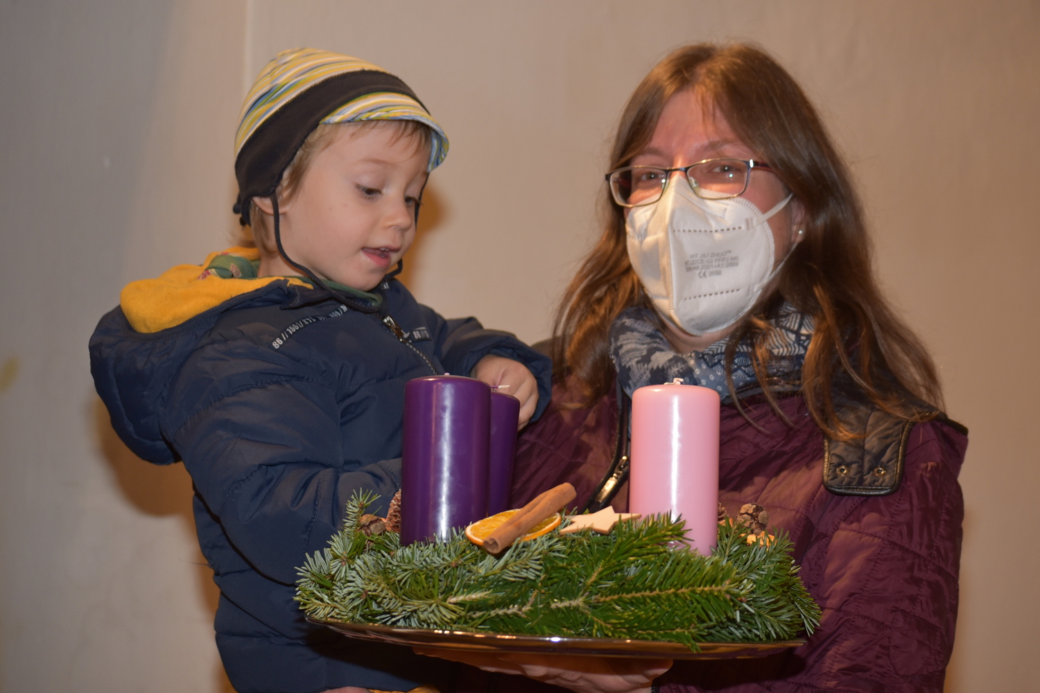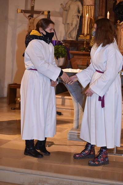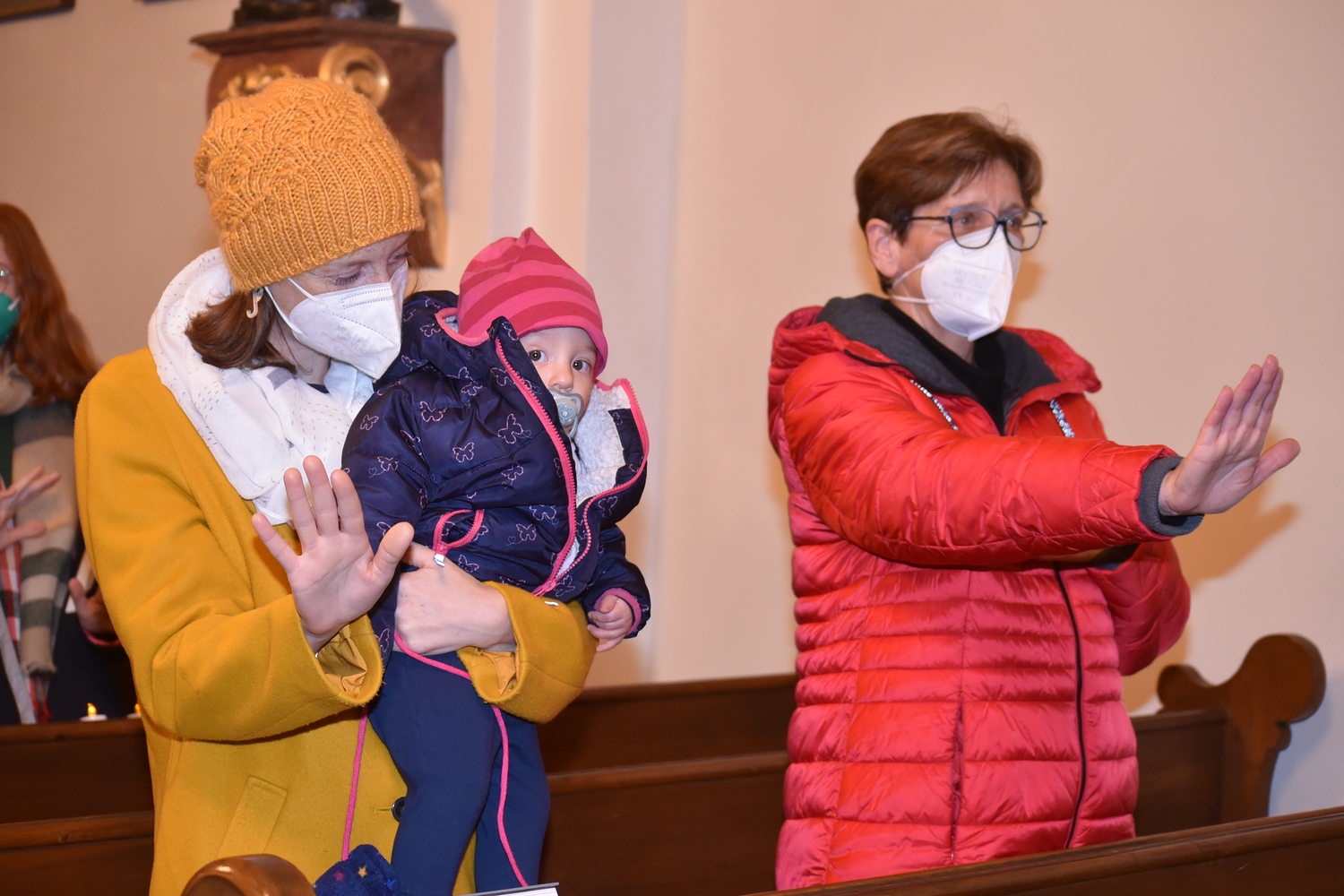 Am Samstag, 27. Nov. 2021 feierte P. Liviu eine Familienmesse mit Adventkranzsegnung. Die Ministranten Iris, Susanna und Philip gestalteten die Heilige Messe zum Thema "Jesus ist unser Licht". Iris und Susanna zeigten uns pantomimisch, wie wir Licht sein können und durch Umarmungen, durch Gespräche, durchs Teilen ein Lächeln ins Gesicht unserer Mitmenschen zaubern können. Um die Coronabestimmungen einzuhalten, untermalten die Heilige Messe nur Maria und Christine als Solistinnen des Generationenchores gesanglich, Hannah Madner spielte auf der Kirchenorgel, sodass die Adventstimmung in die Kirche getragen wurde. Ein herzliches Vergeltsgott allen Mitfeiernden!