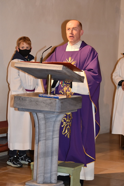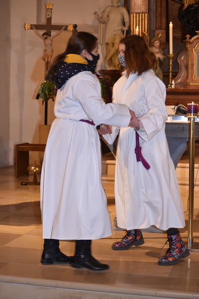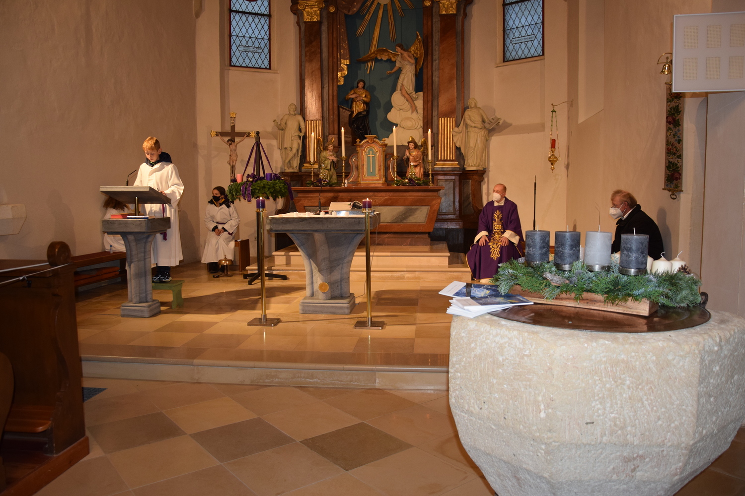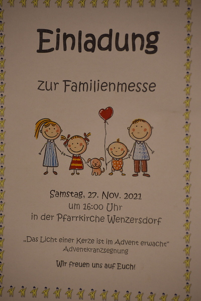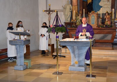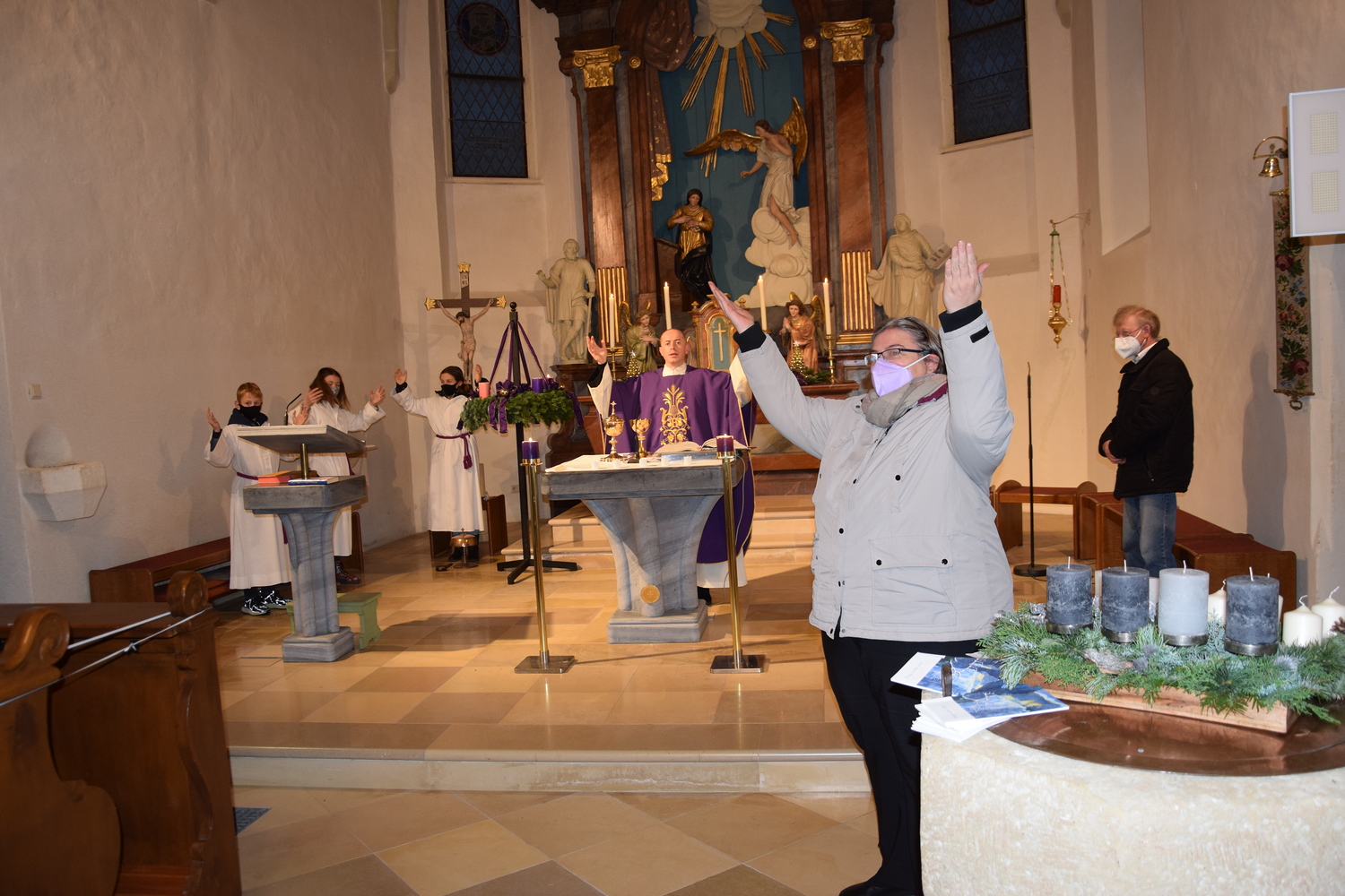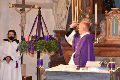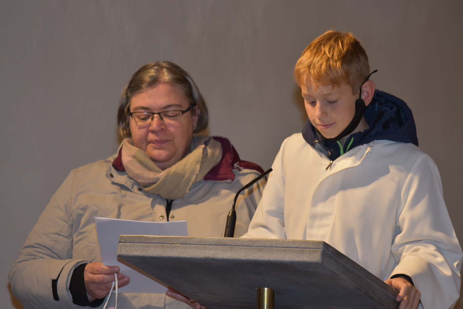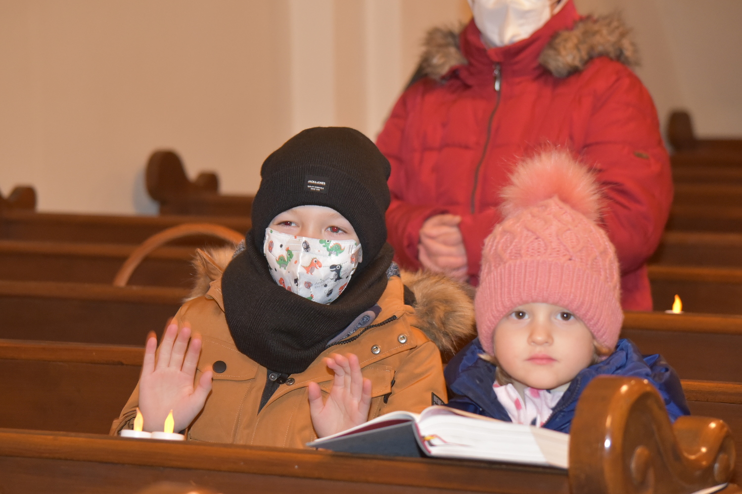 Am Samstag, 27. Nov. 2021 feierte P. Liviu eine Familienmesse mit Adventkranzsegnung. Die Ministranten Iris, Susanna und Philip gestalteten die Heilige Messe zum Thema "Jesus ist unser Licht". Iris und Susanna zeigten uns pantomimisch, wie wir Licht sein können und durch Umarmungen, durch Gespräche, durchs Teilen ein Lächeln ins Gesicht unserer Mitmenschen zaubern können. Um die Coronabestimmungen einzuhalten, untermalten die Heilige Messe nur Maria und Christine als Solistinnen des Generationenchores gesanglich, Hannah Madner spielte auf der Kirchenorgel, sodass die Adventstimmung in die Kirche getragen wurde. Ein herzliches Vergeltsgott allen Mitfeiernden!