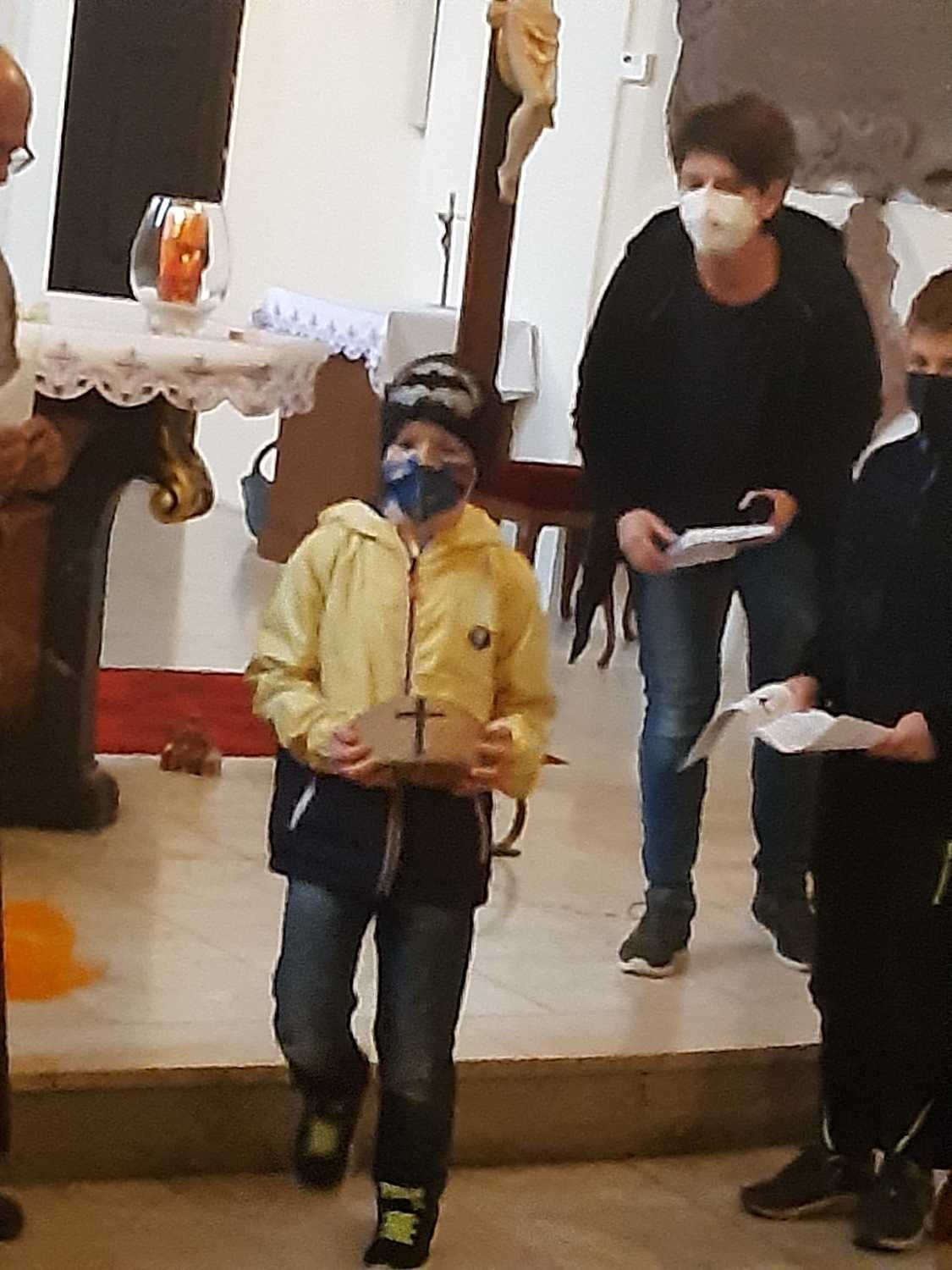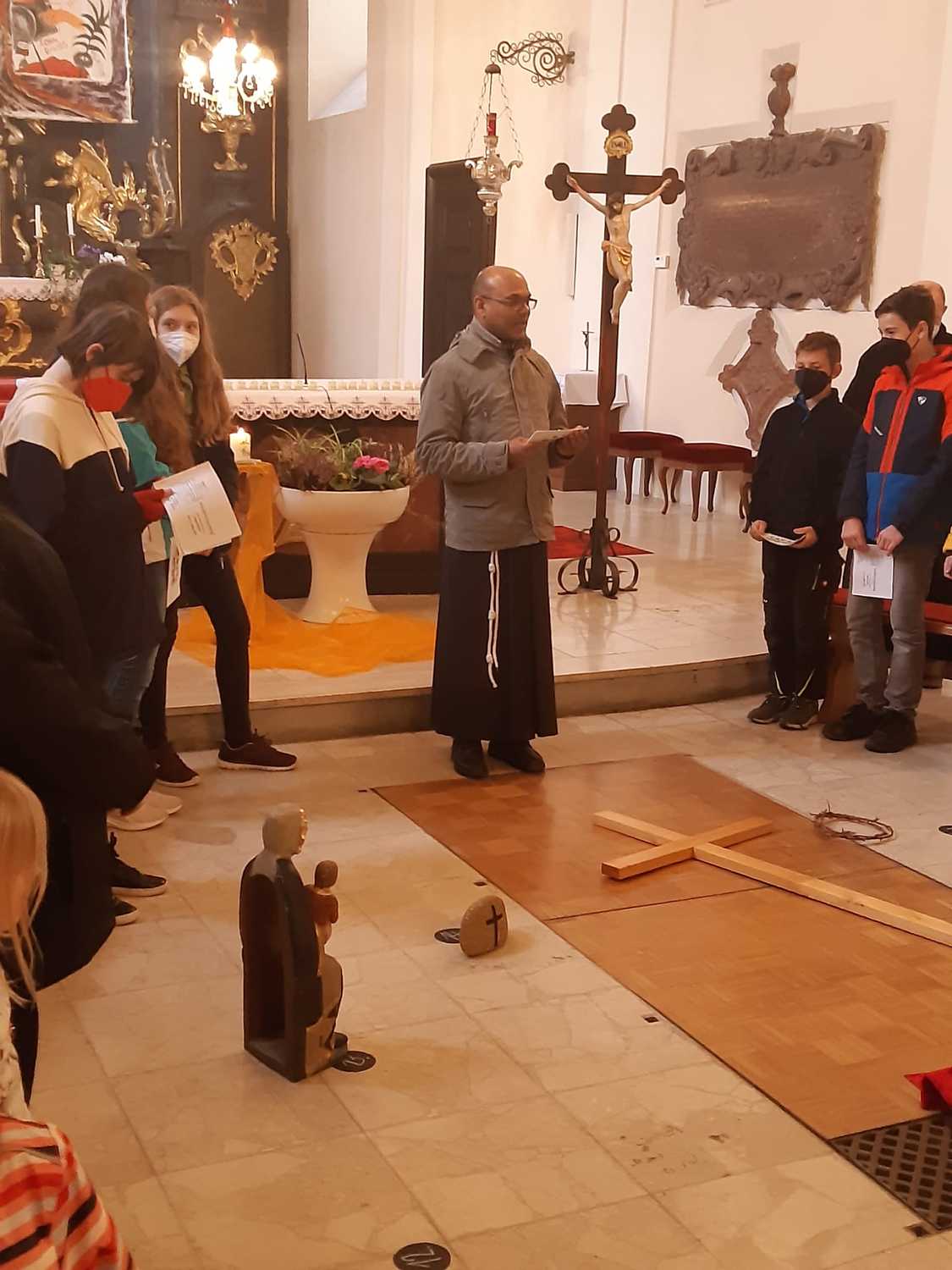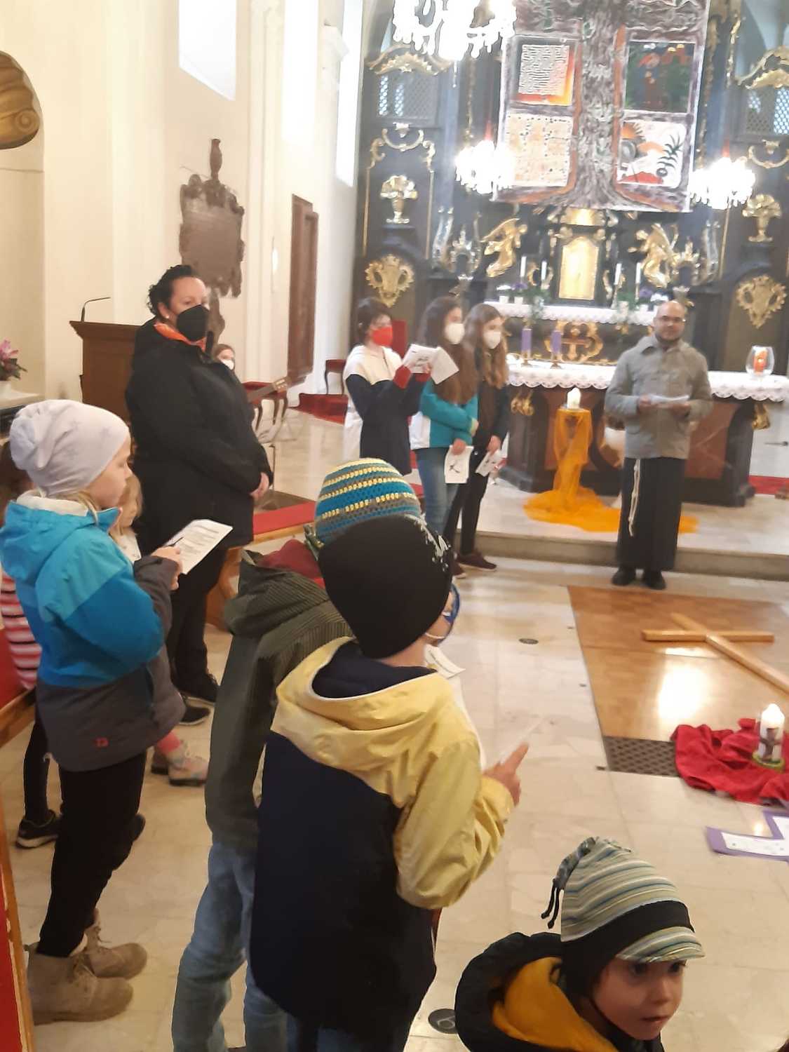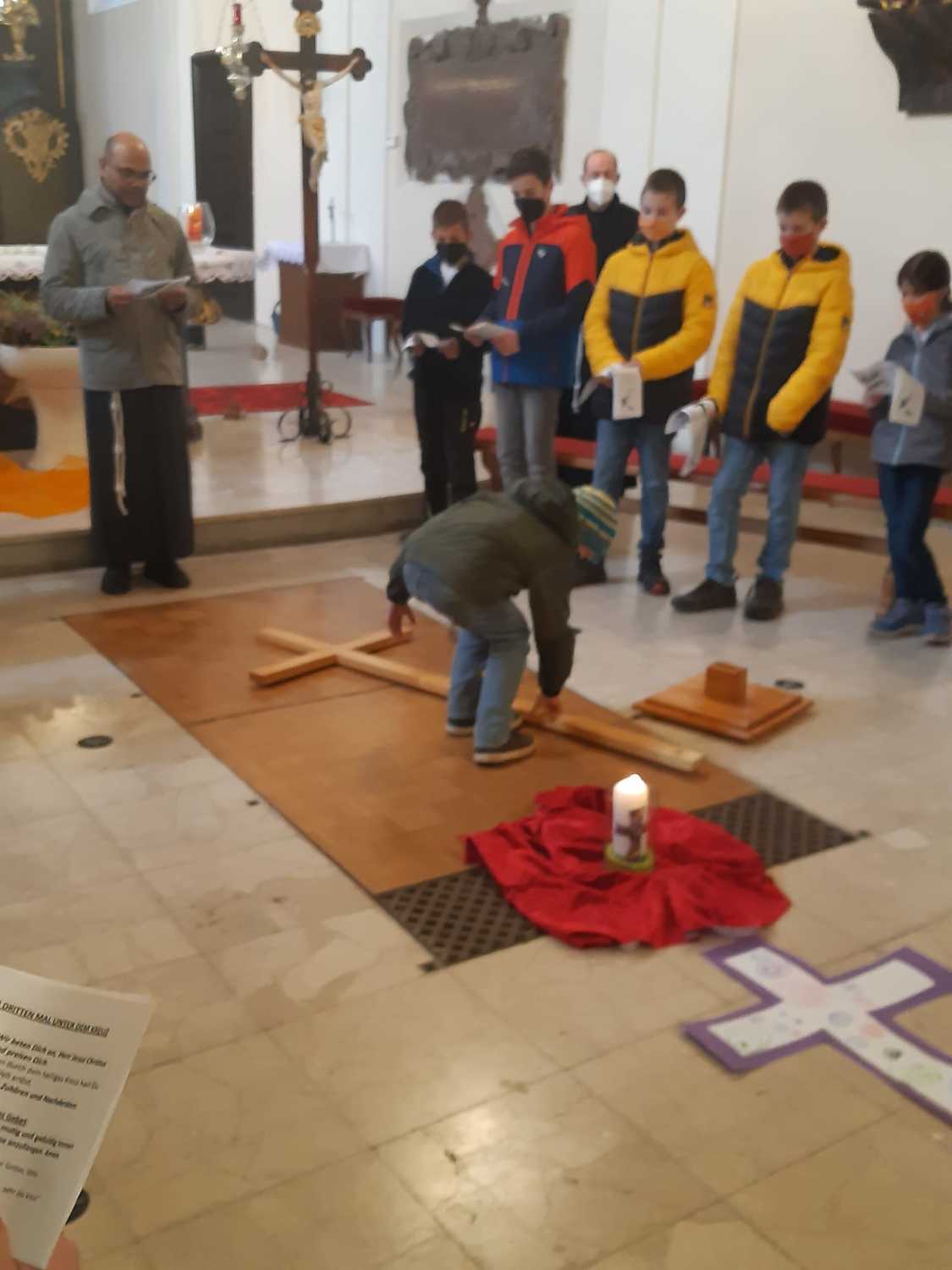 Unsere Erstkommunionkinder, Ministranten und deren Geschwister beteten und dachten gemeinsam mit Pater Nicholas und Pater Liviu an Jesus, der für uns gestorben ist.