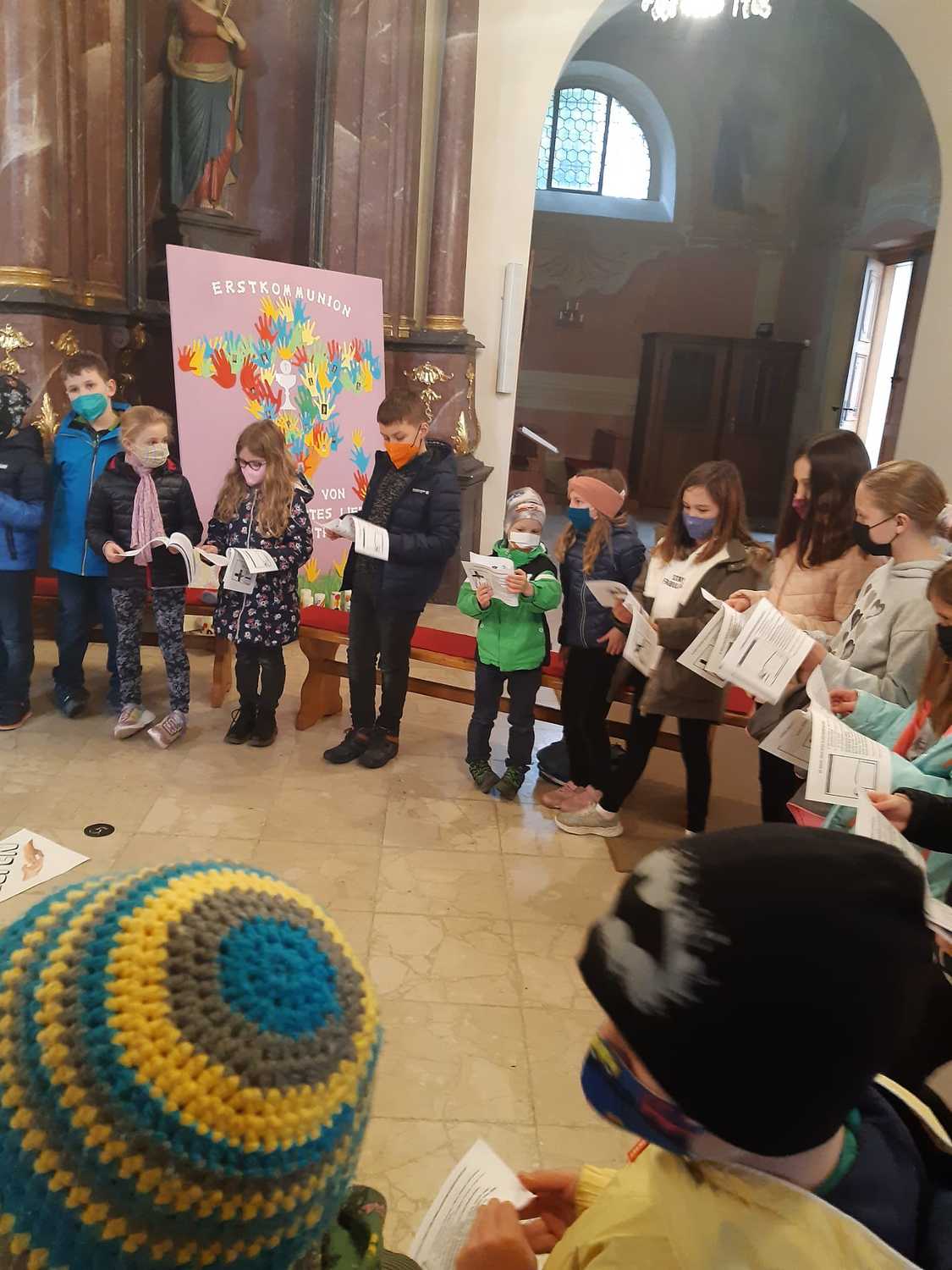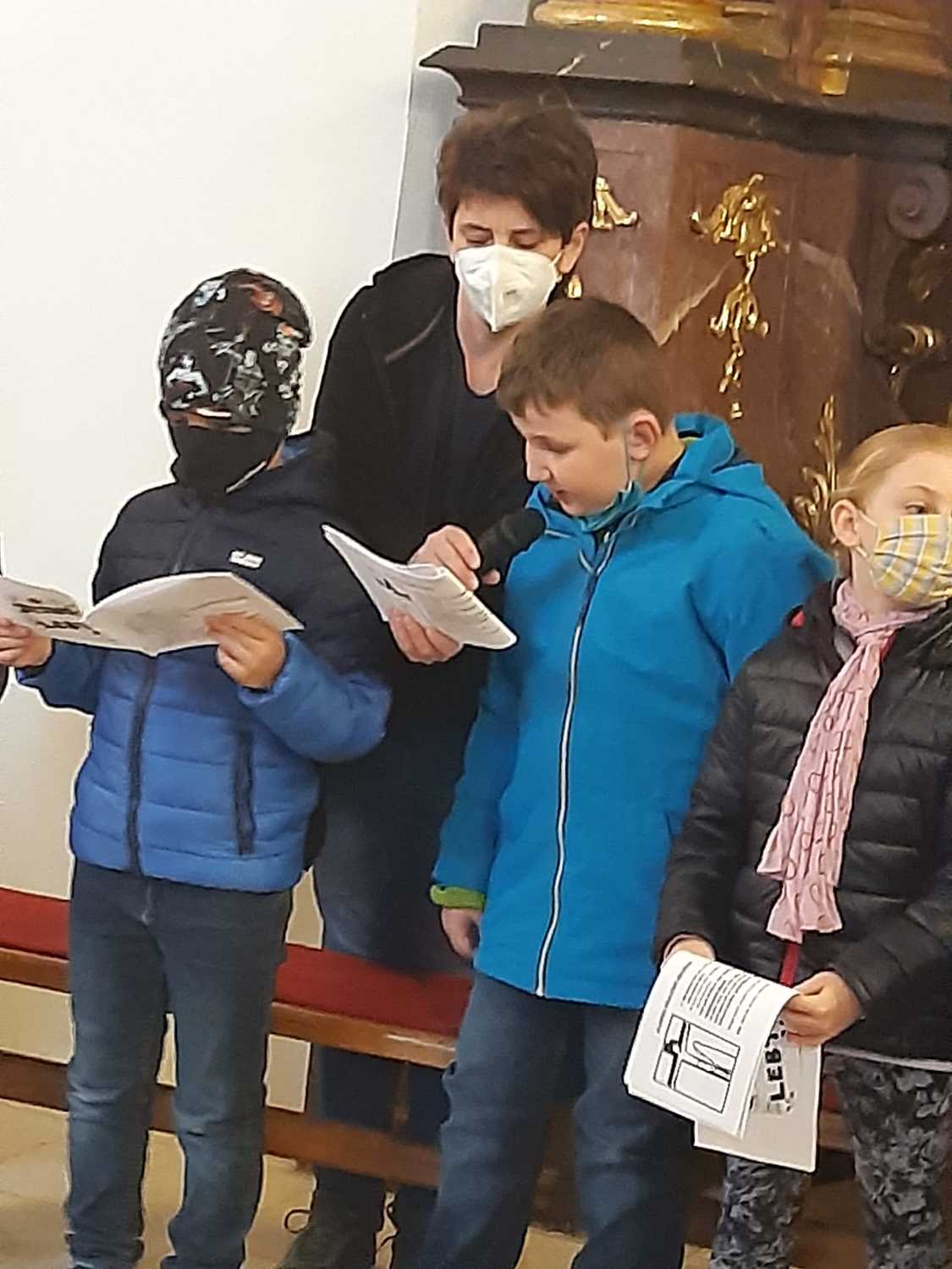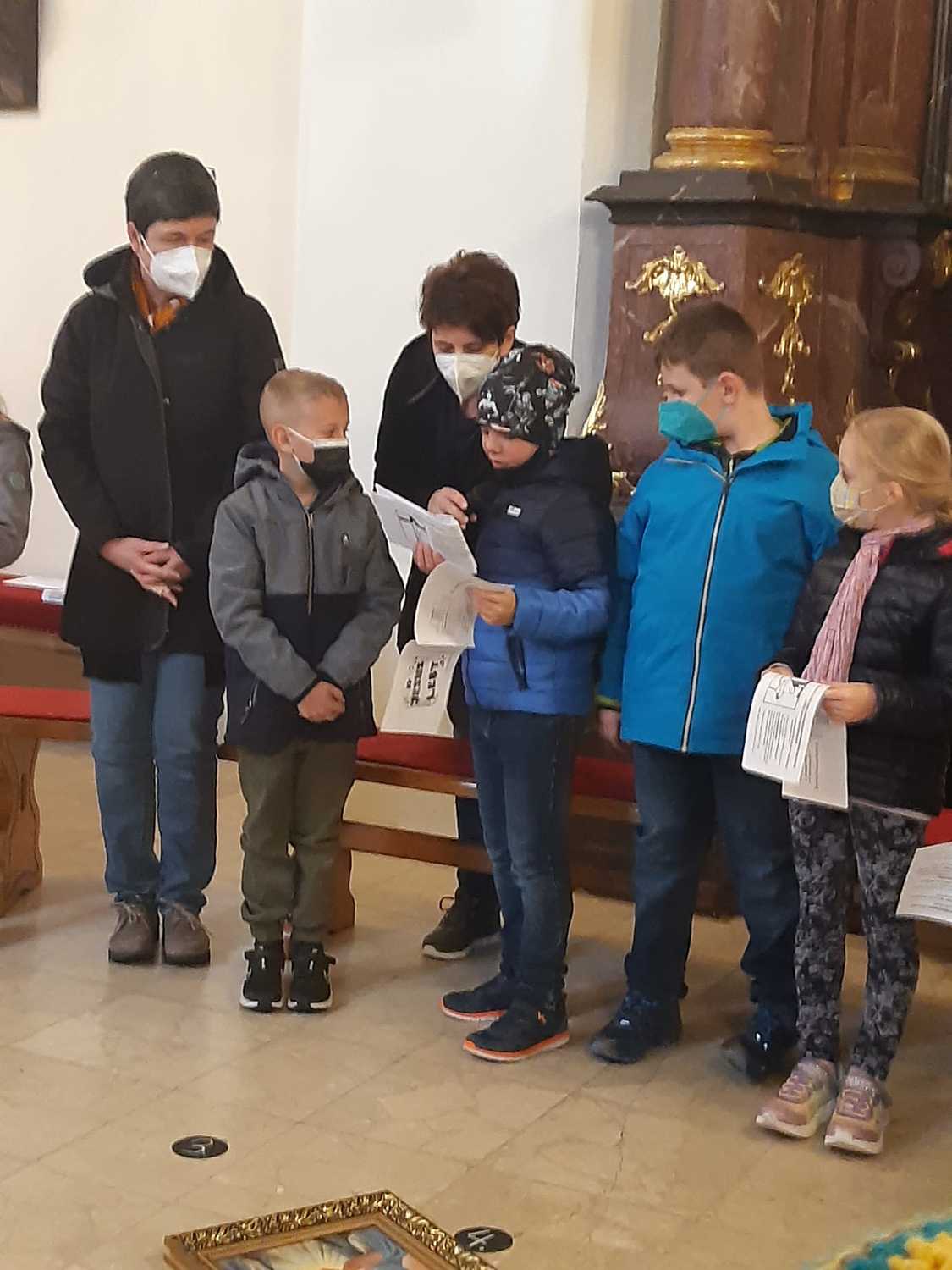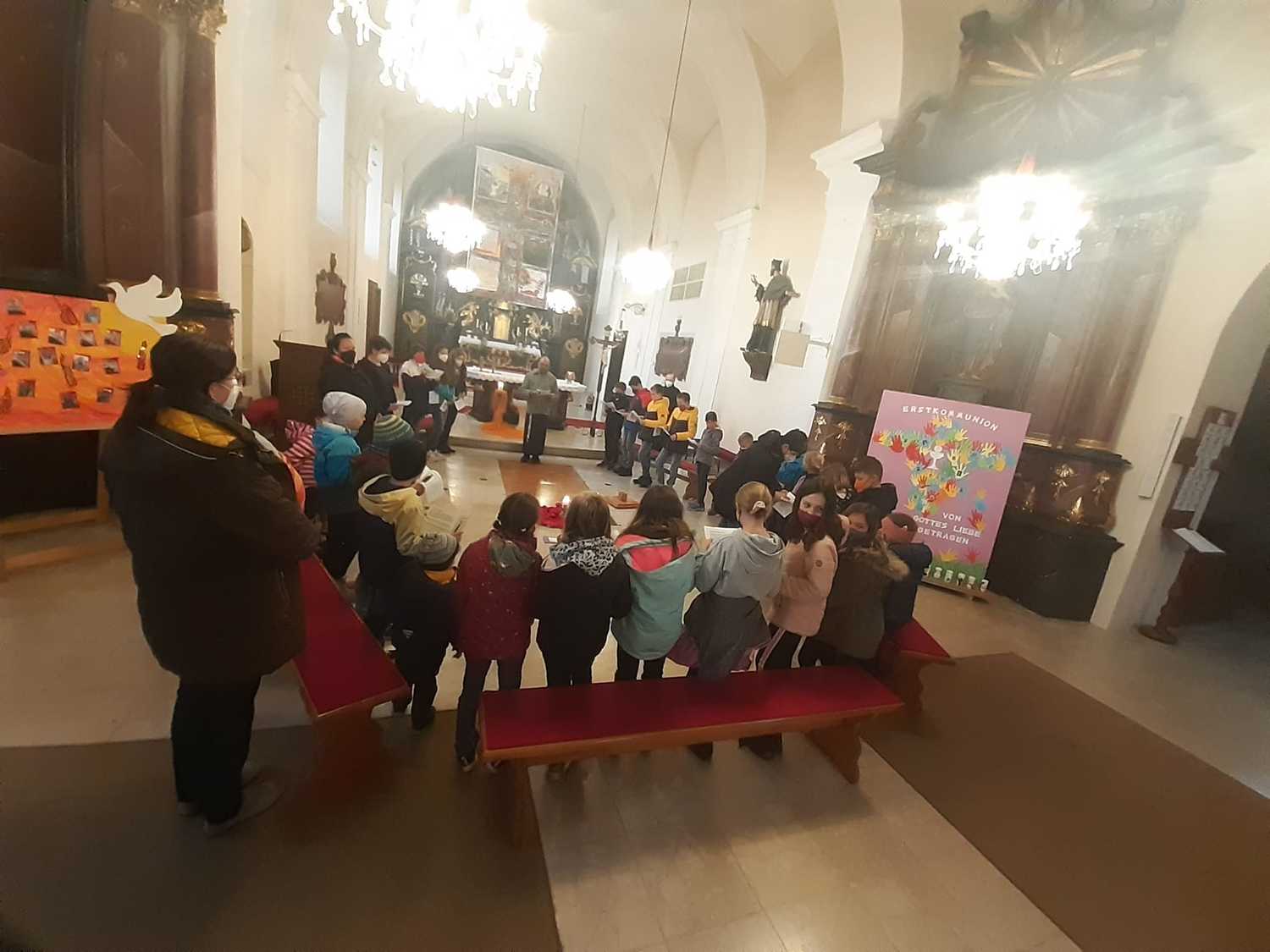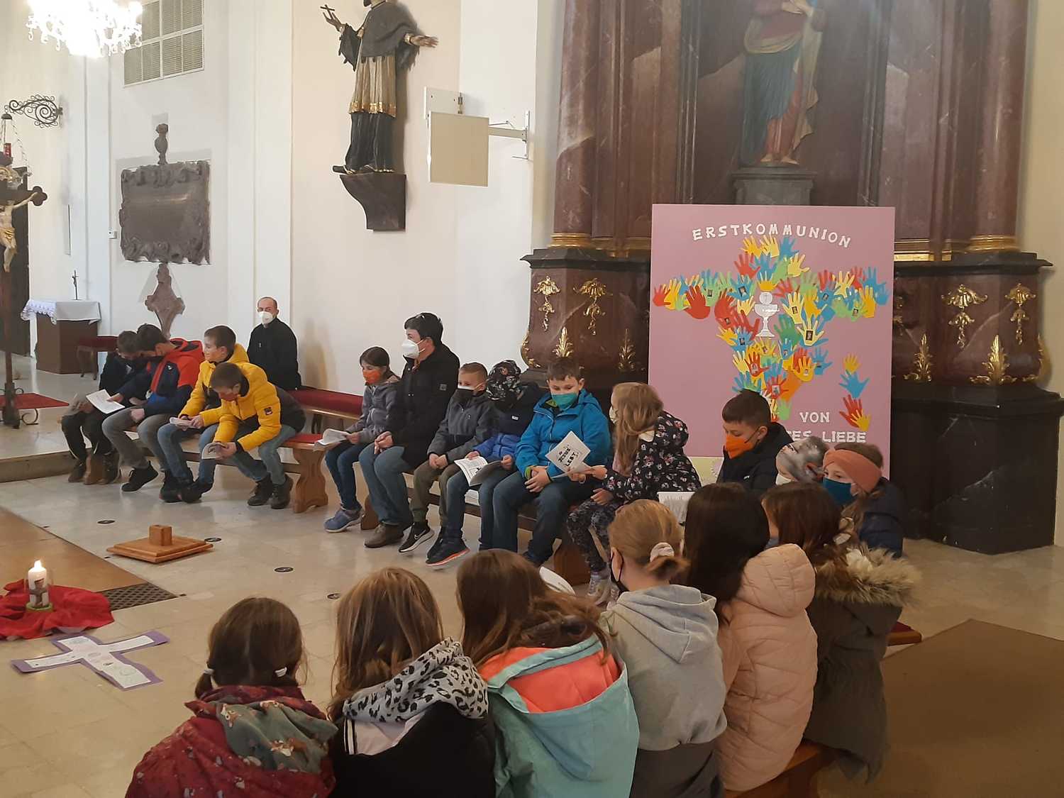 Unsere Erstkommunionkinder, Ministranten und deren Geschwister beteten und dachten gemeinsam mit Pater Nicholas und Pater Liviu an Jesus, der für uns gestorben ist.