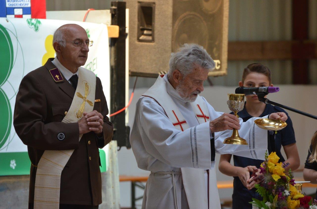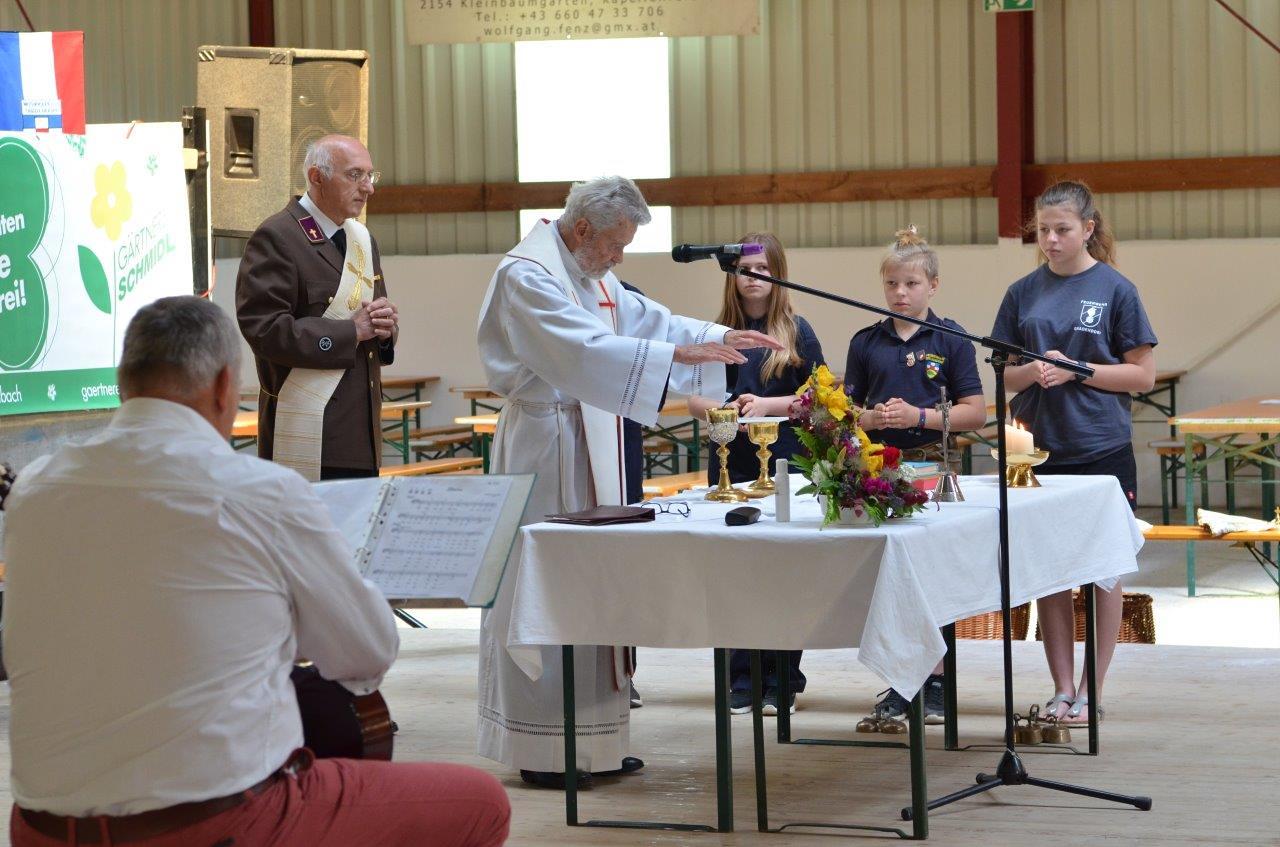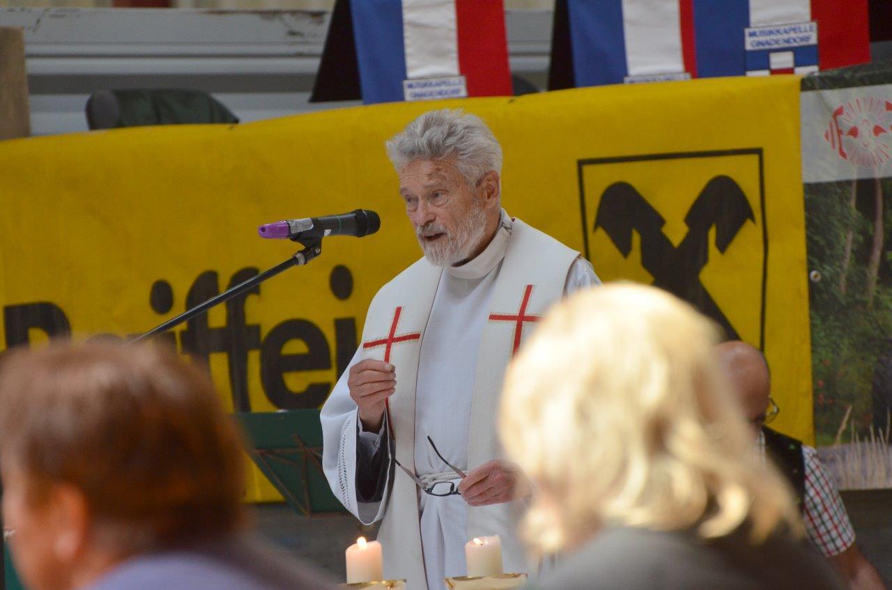 Pater Norbert zelebrierte gemeinsam mit Feuerwehrkurat Diakon Gerhard Romstorfer die Feldmesse beim Feuerwehrheurigen in Gnadendorf.