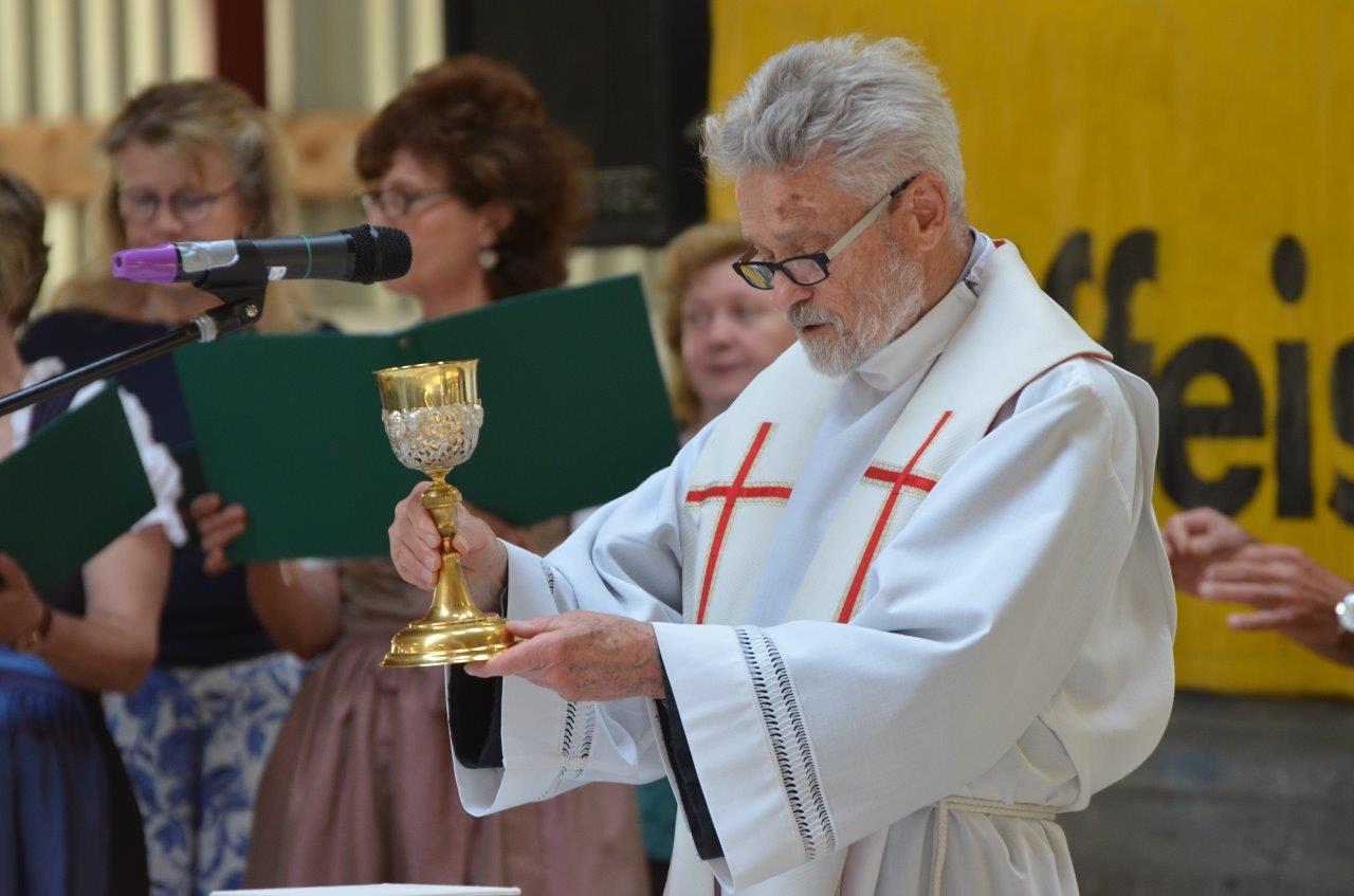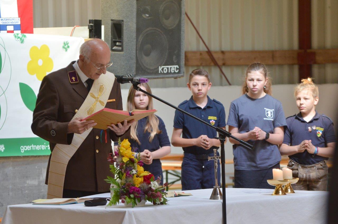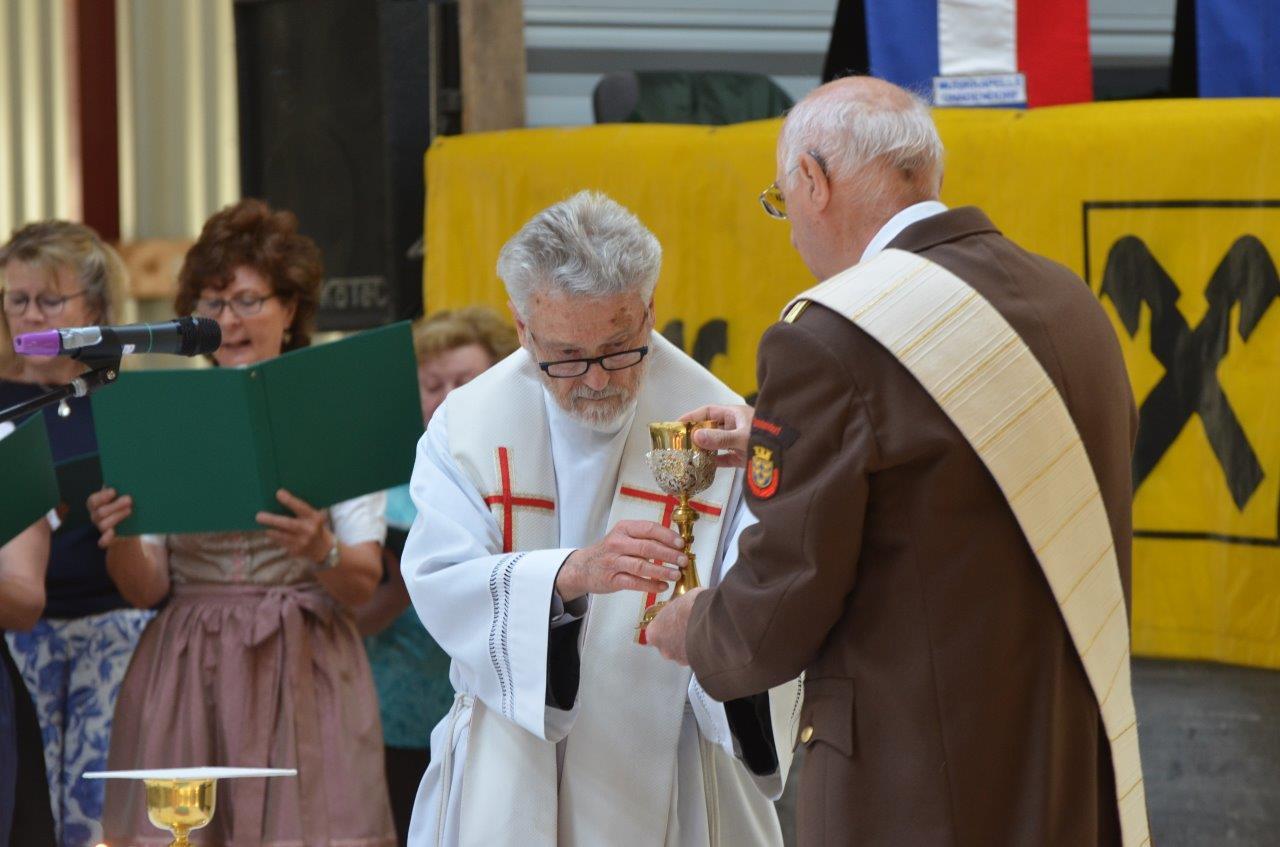 Pater Norbert zelebrierte gemeinsam mit Feuerwehrkurat Diakon Gerhard Romstorfer die Feldmesse beim Feuerwehrheurigen in Gnadendorf.