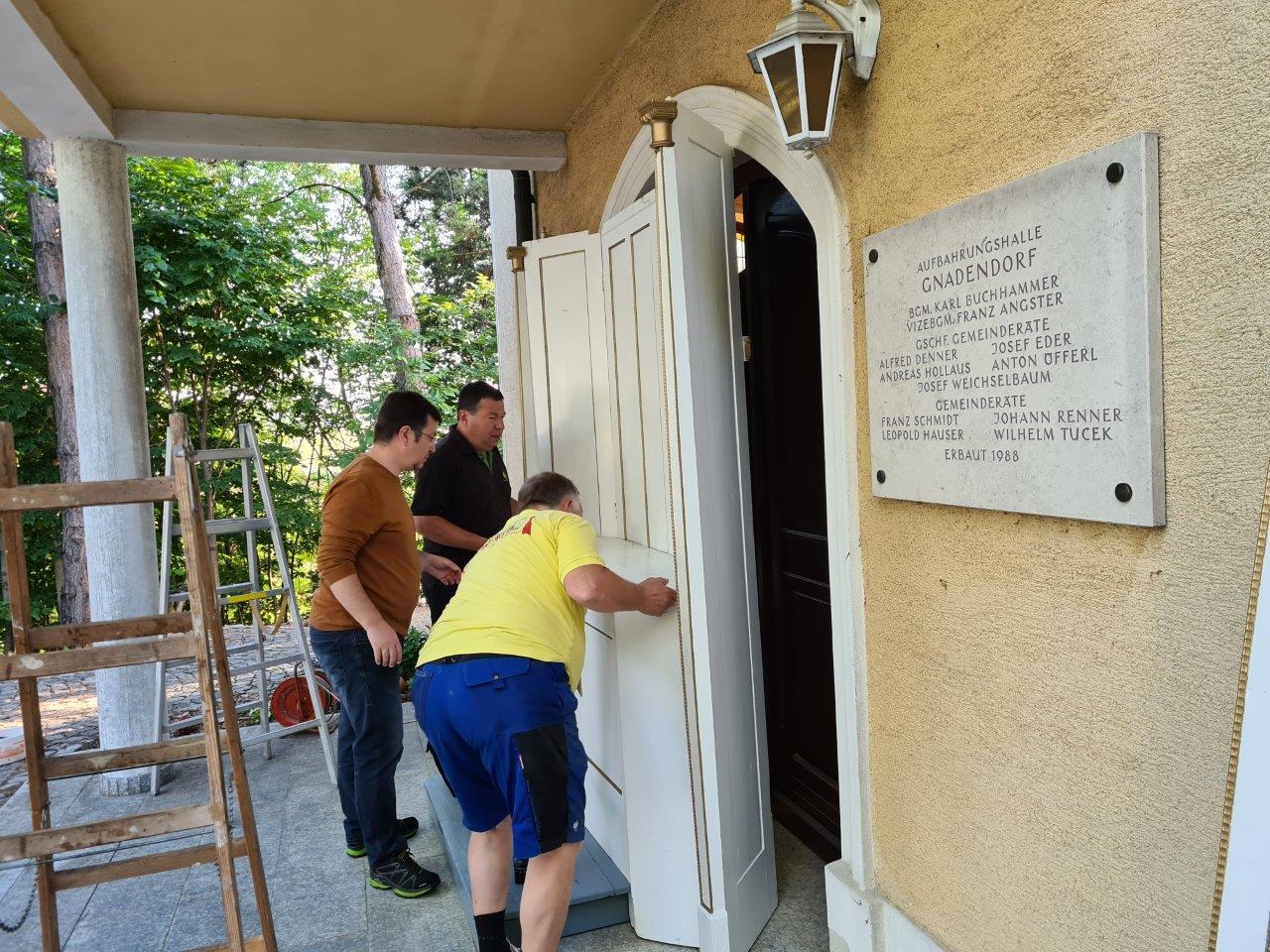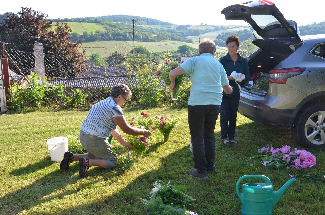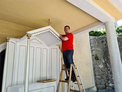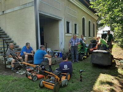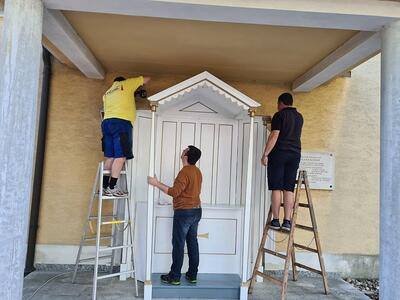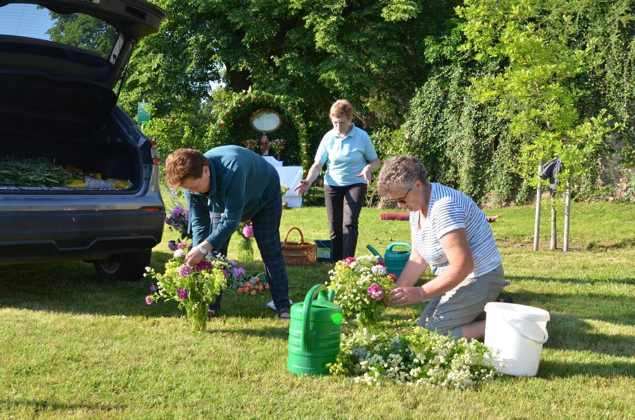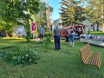 Vorbereitungsarbeiten für das Fronleichnamsfest in Gnadendorf.