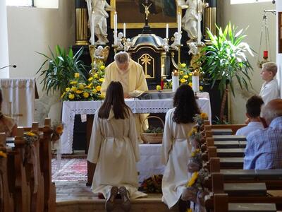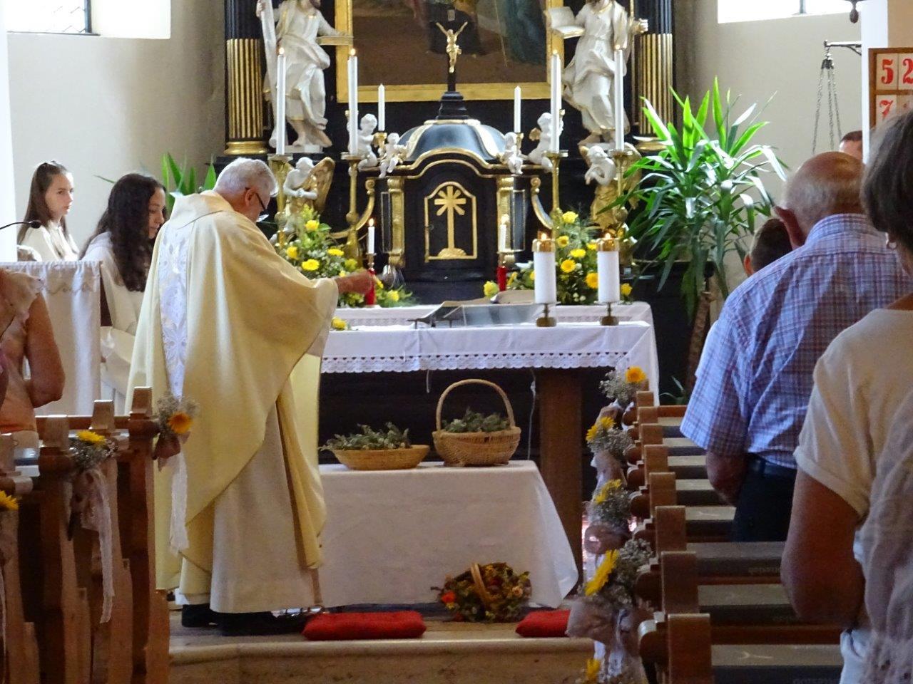 Im Rahmen des Gottesdienstes segnete Pater Norbert auch die vorbereiteten Kräuter.