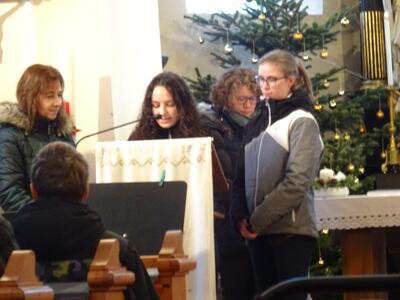 Bilder der Krippenandacht in der Pfarrkirche Ameis am Heiligen Abend.