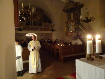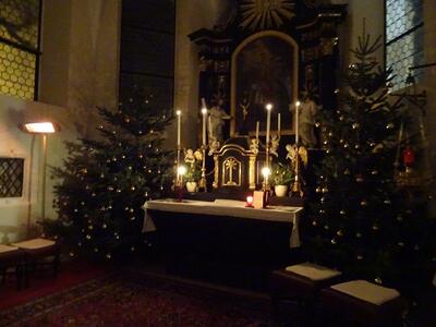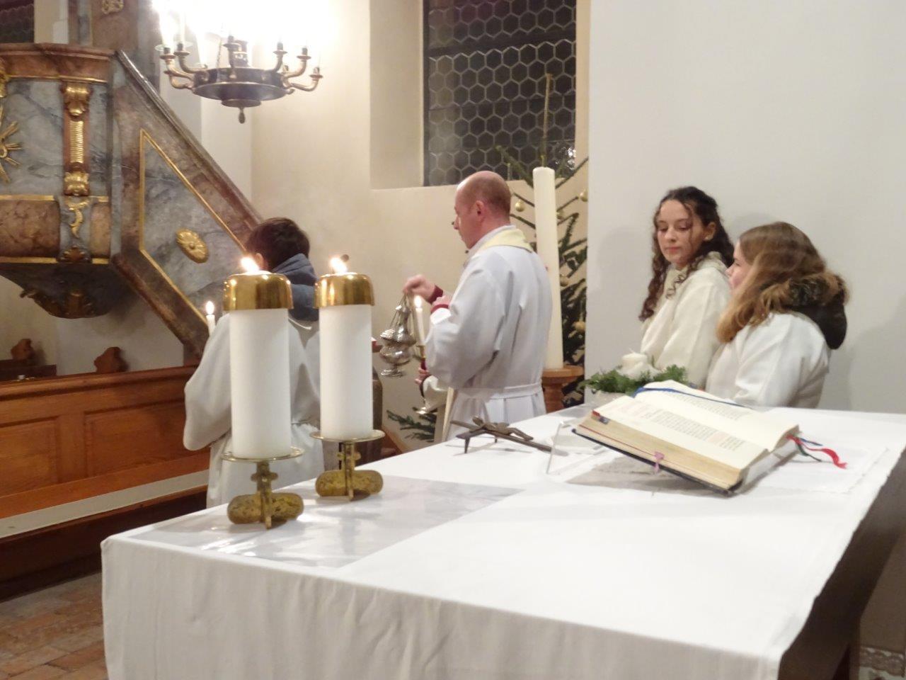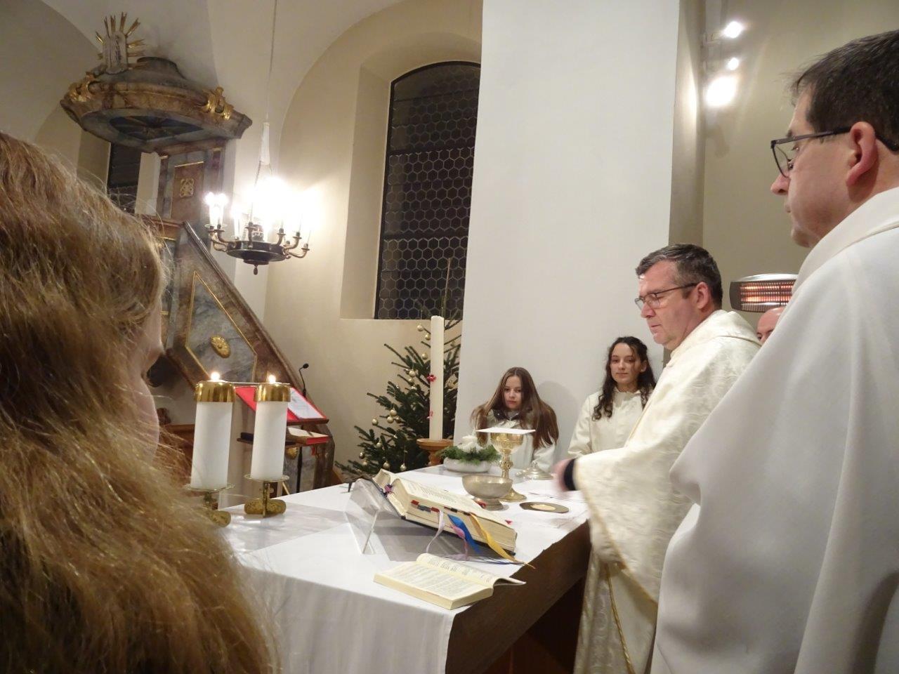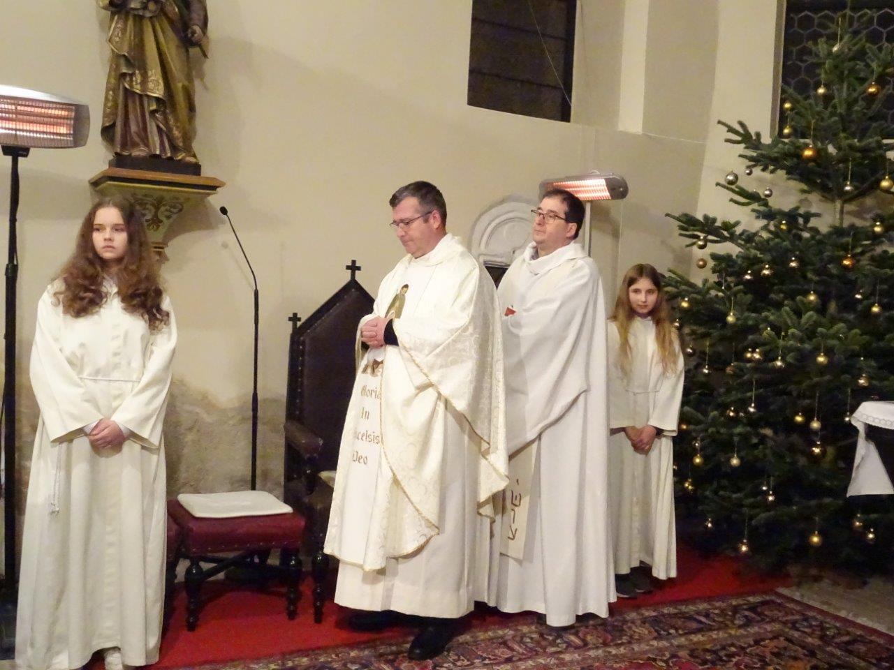Bilder von der Christmette in der Pfarre Ameis mit Überraschungsbesuch von P. Eusebio und Pater Silvestru, die aus Rom kamen und über Ameis nach Rumänien nach Hause fuhren.