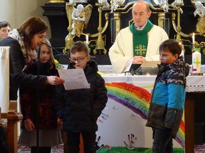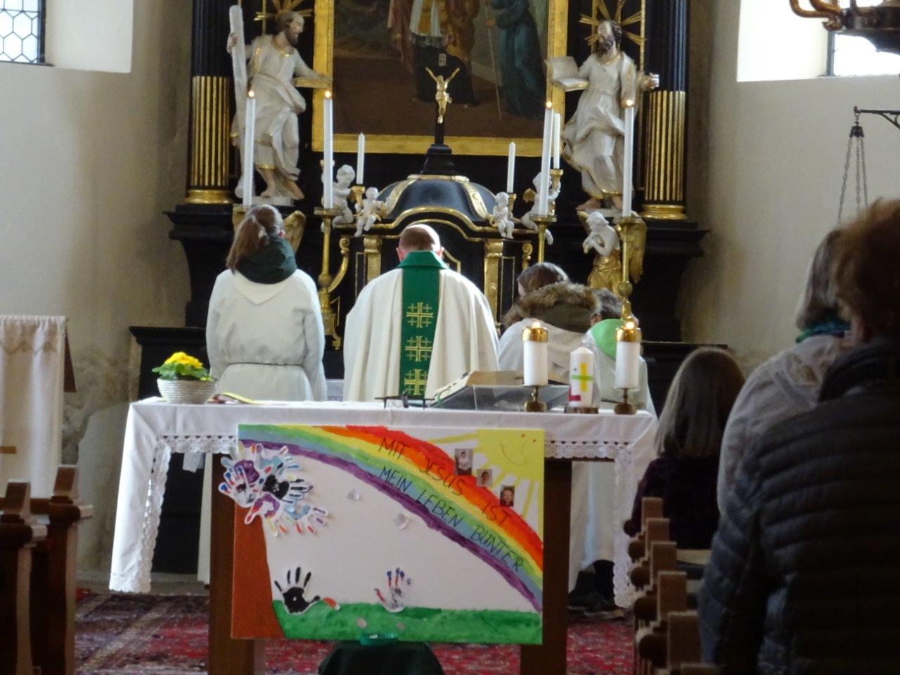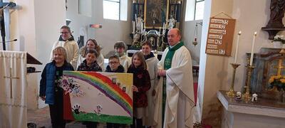 Vorstellung der Erstkommunionkinder in der Pfarrkirche Ameis im Rahmen des Sonntagsgottesdienstes.