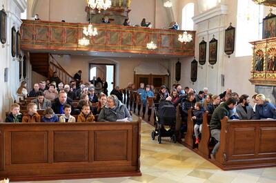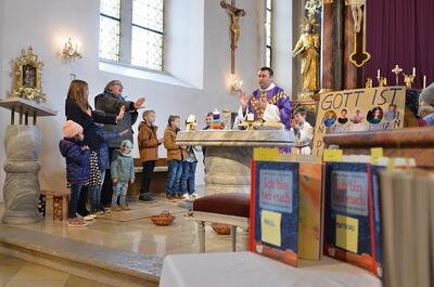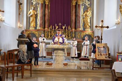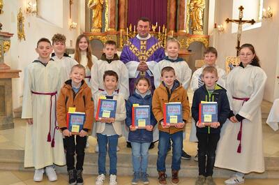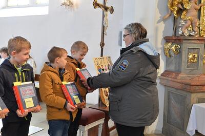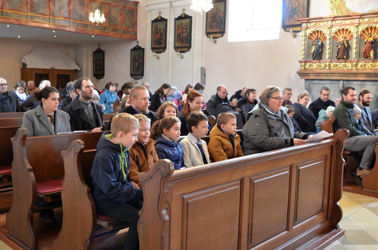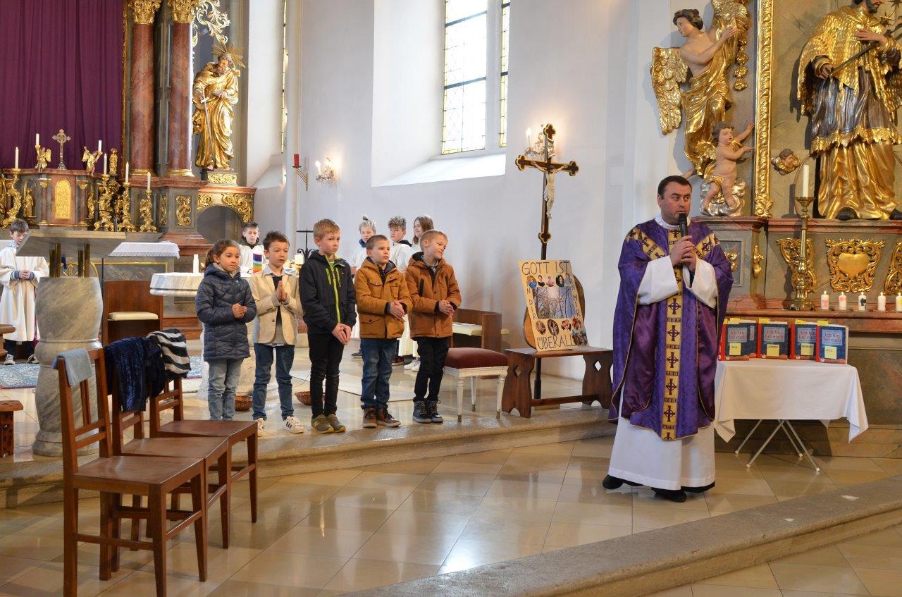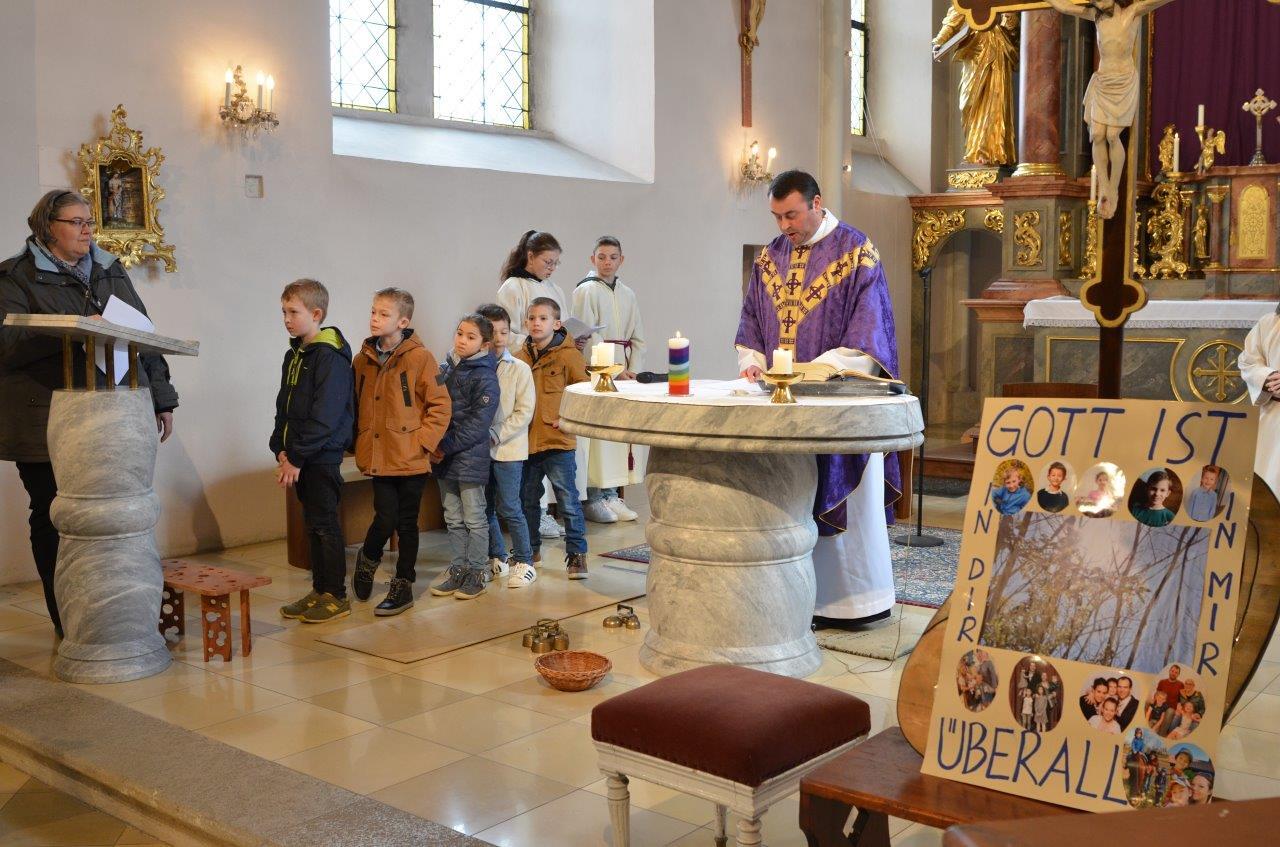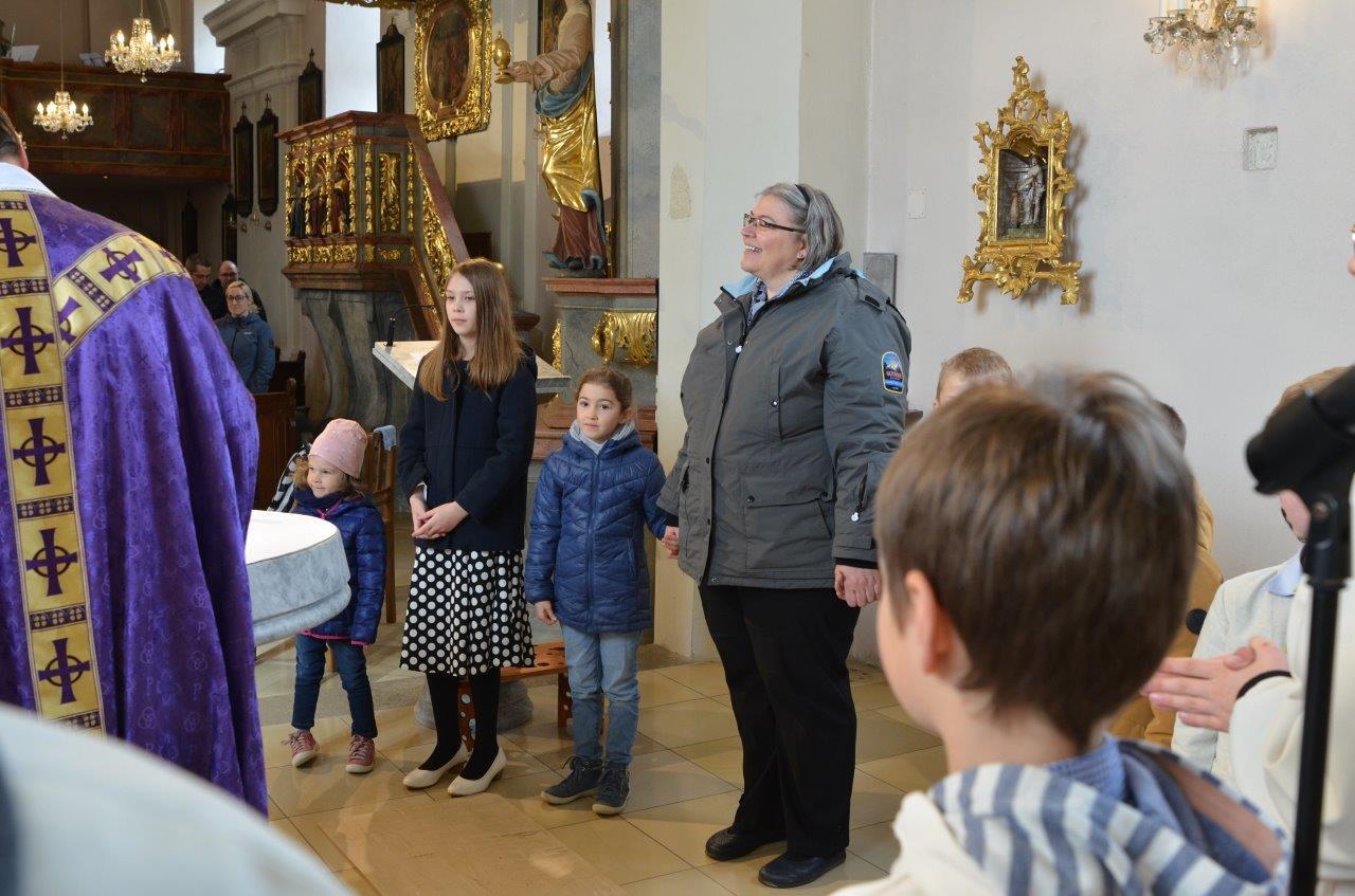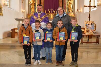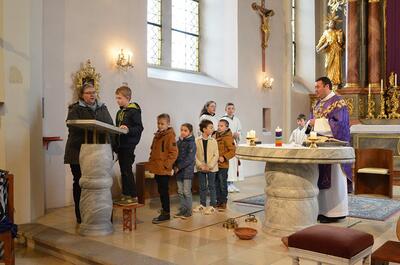 Die heurigen Erstkommunionkinder der Pfarren Wenzersdorf und Gnadendorf stellten sich bei der Familienmesse in Gnadendorf vor.