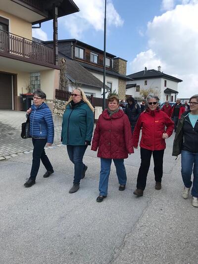 Gemeinsames Gebet bei der Kirche und Marsch ins Kellerdorf. Brauchtumspflege in Föllim.