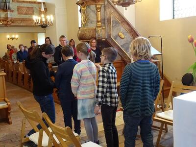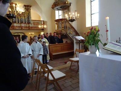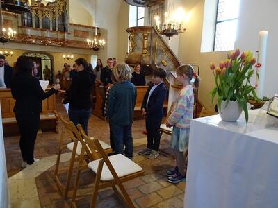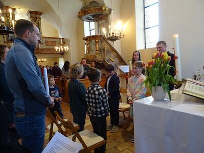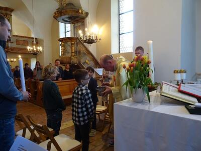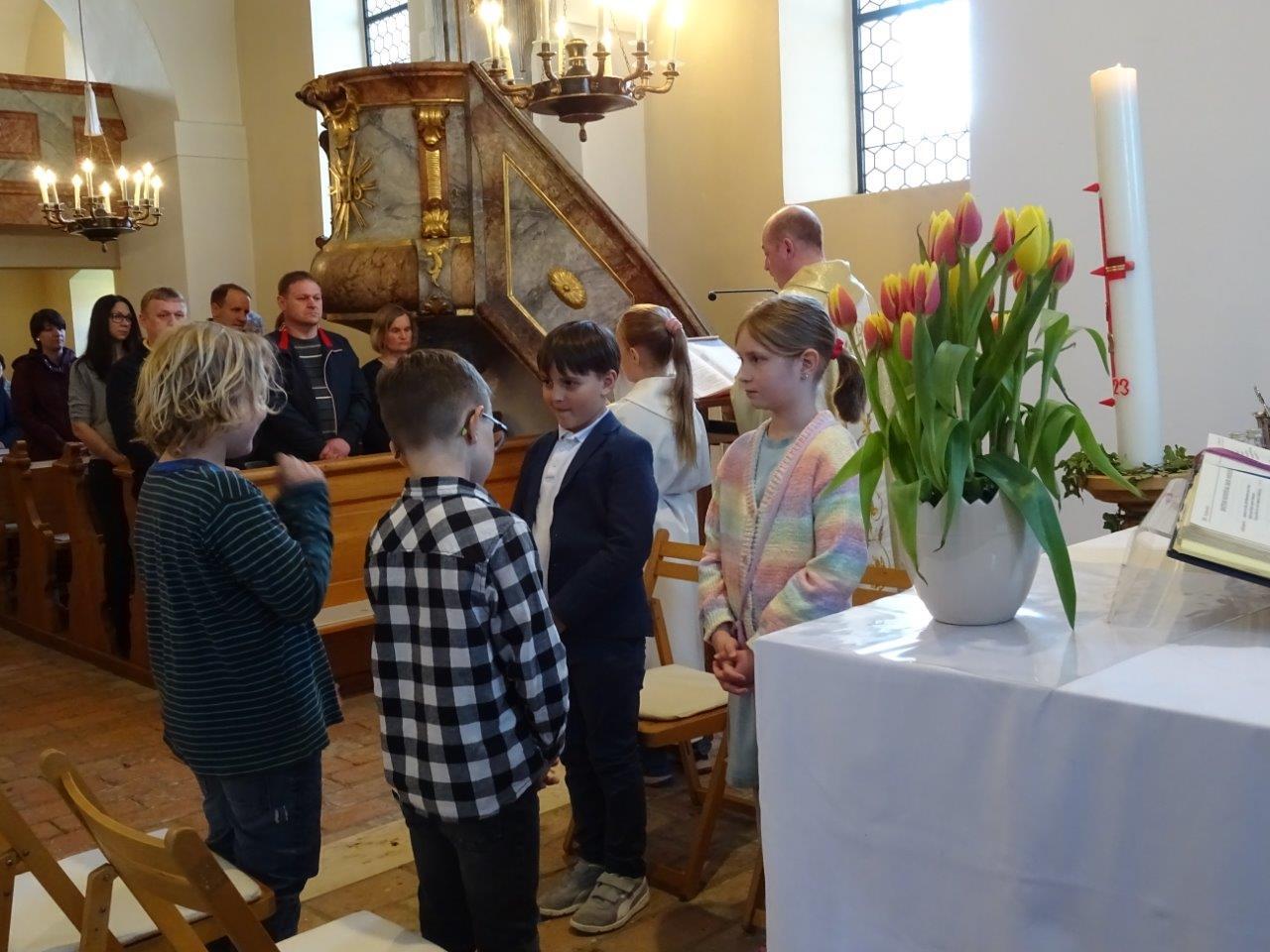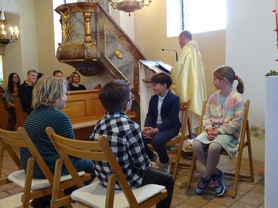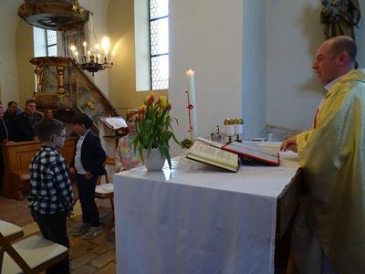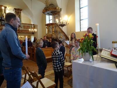 Tauferneuerung der Erstkommunionkinder - Gottesdienst am 22. April 2023 in der Pfarrkirche Ameis.