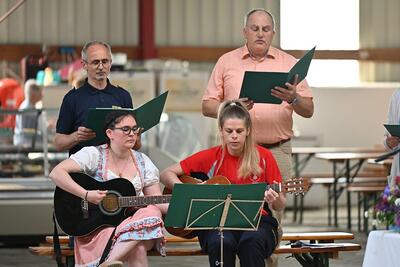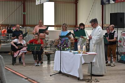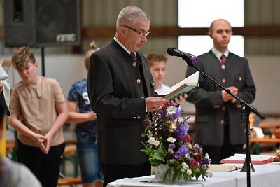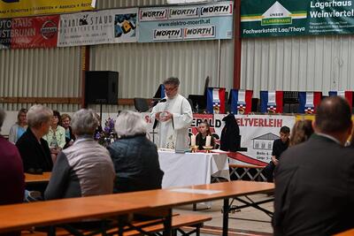 Pater Darius Zayac feierte die Feldmesse beim diesjährigen Feuerwehrheurigen in Gnadendorf.