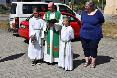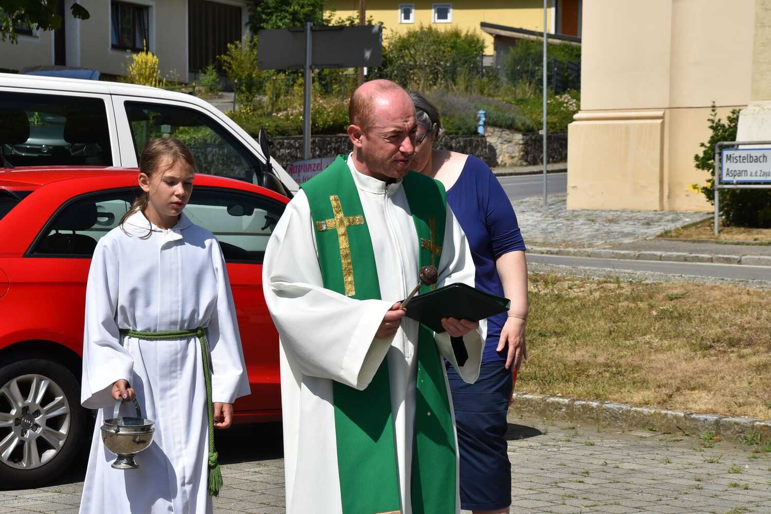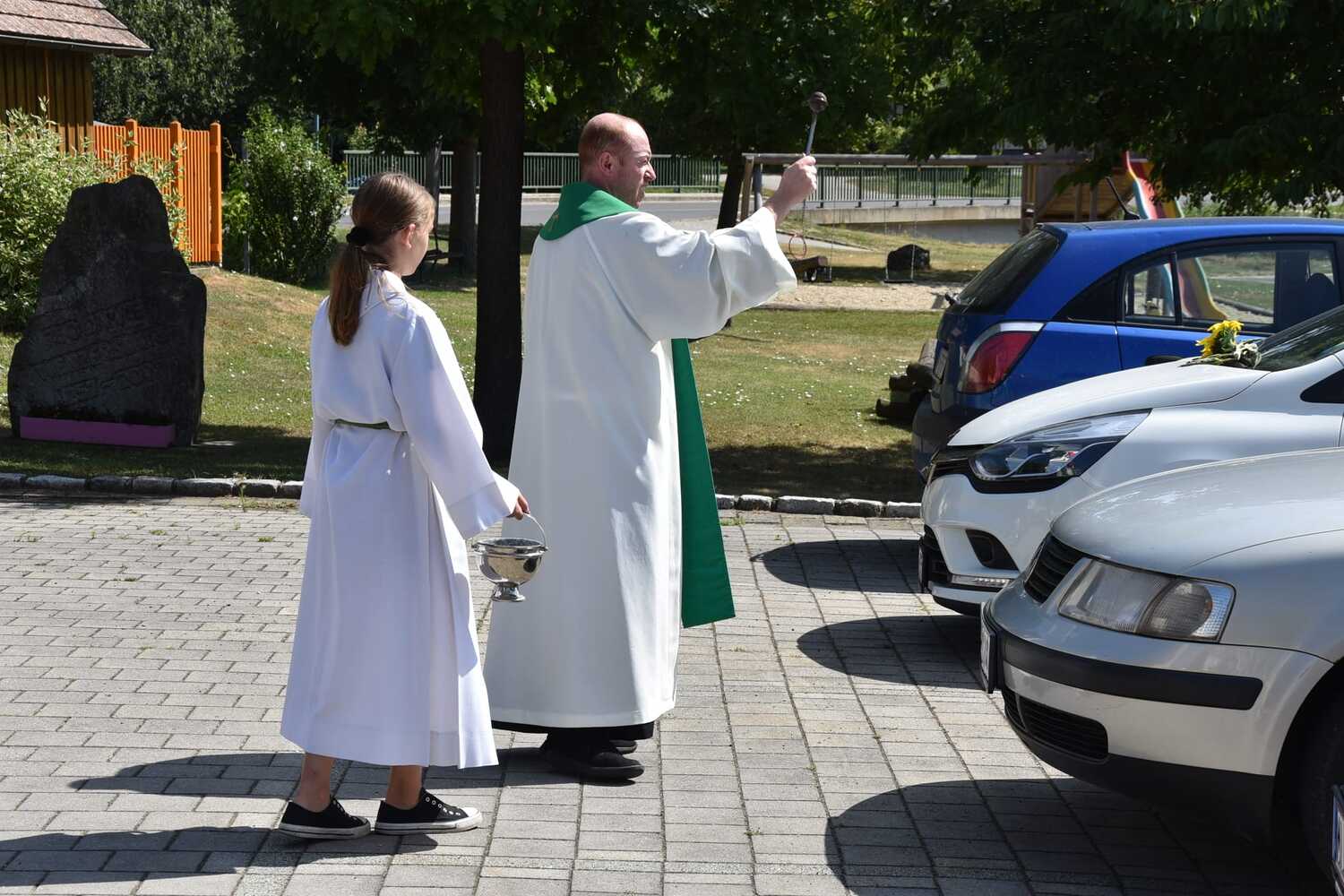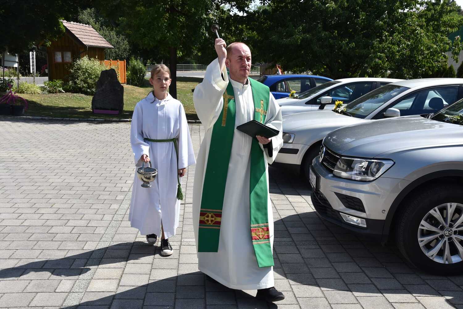 Pater Liviu segnete die Fahrzeuge der Gottesdienstbesucher in Wenzersdorf.