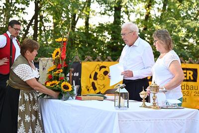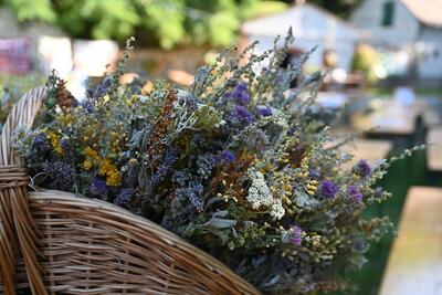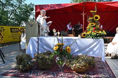 Pfarrer Johann Schwarzl segnete nach dem Gottesdienst die vorbereiteten Kräutersträußchen.