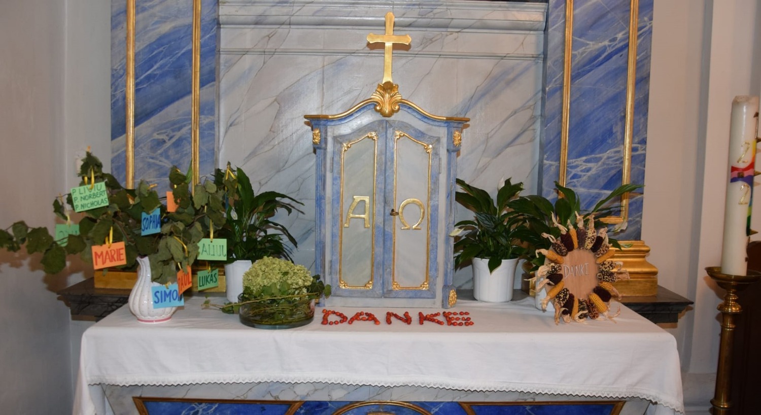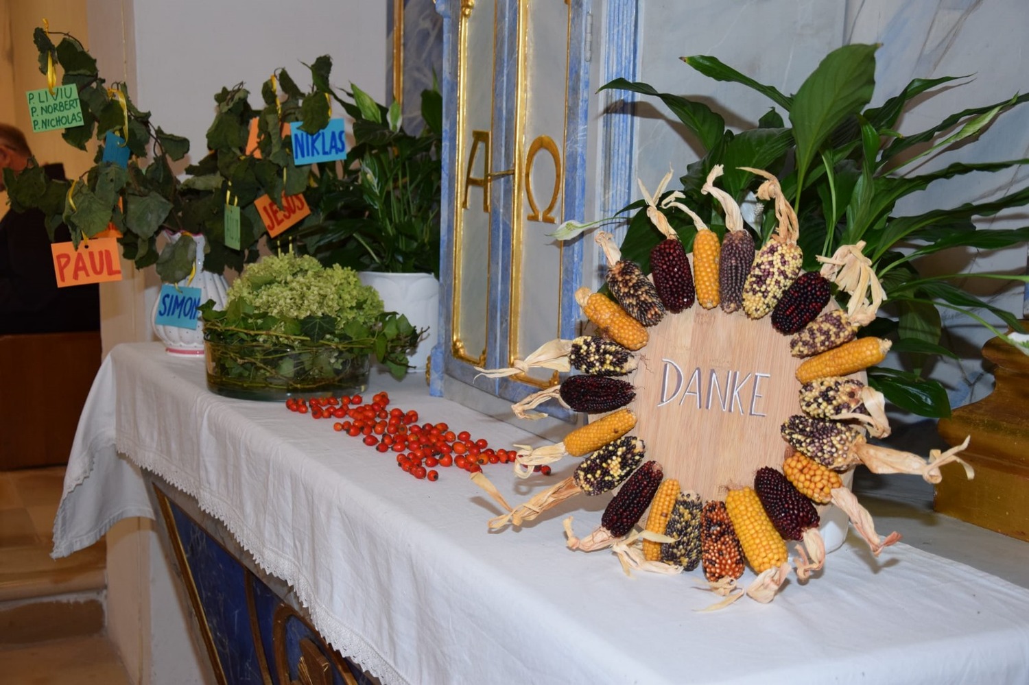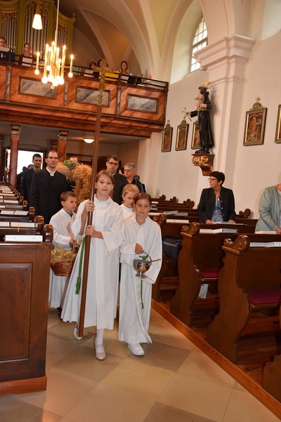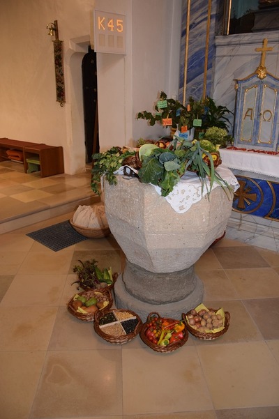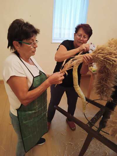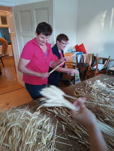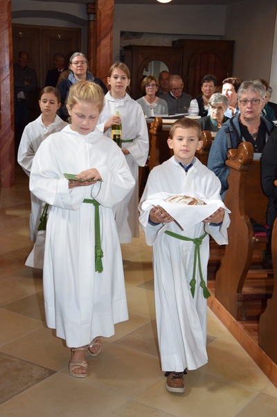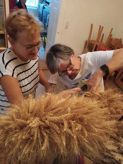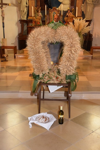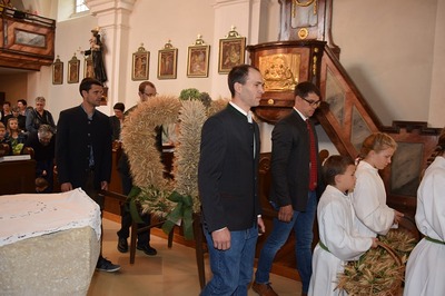 Bilder vom heurigen Erntedankkrone flechten und vom Erntedankfest.