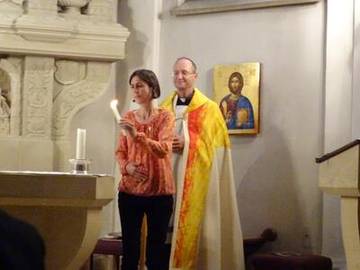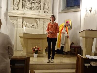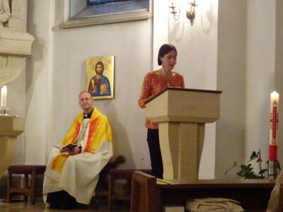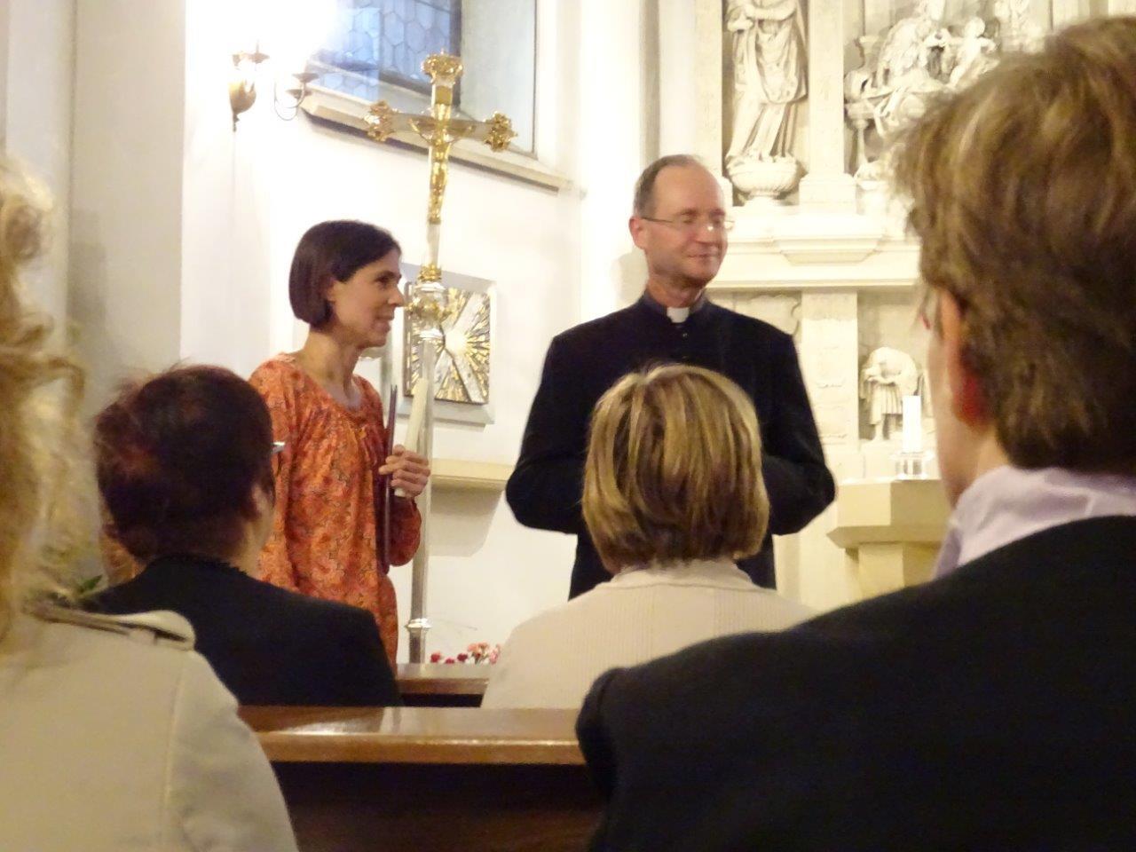 Dekretübergabe an Ulrike Wraneschitz, die neue Leiterin von Wort-Gottes-Feiern in der Pfarre Ameis.