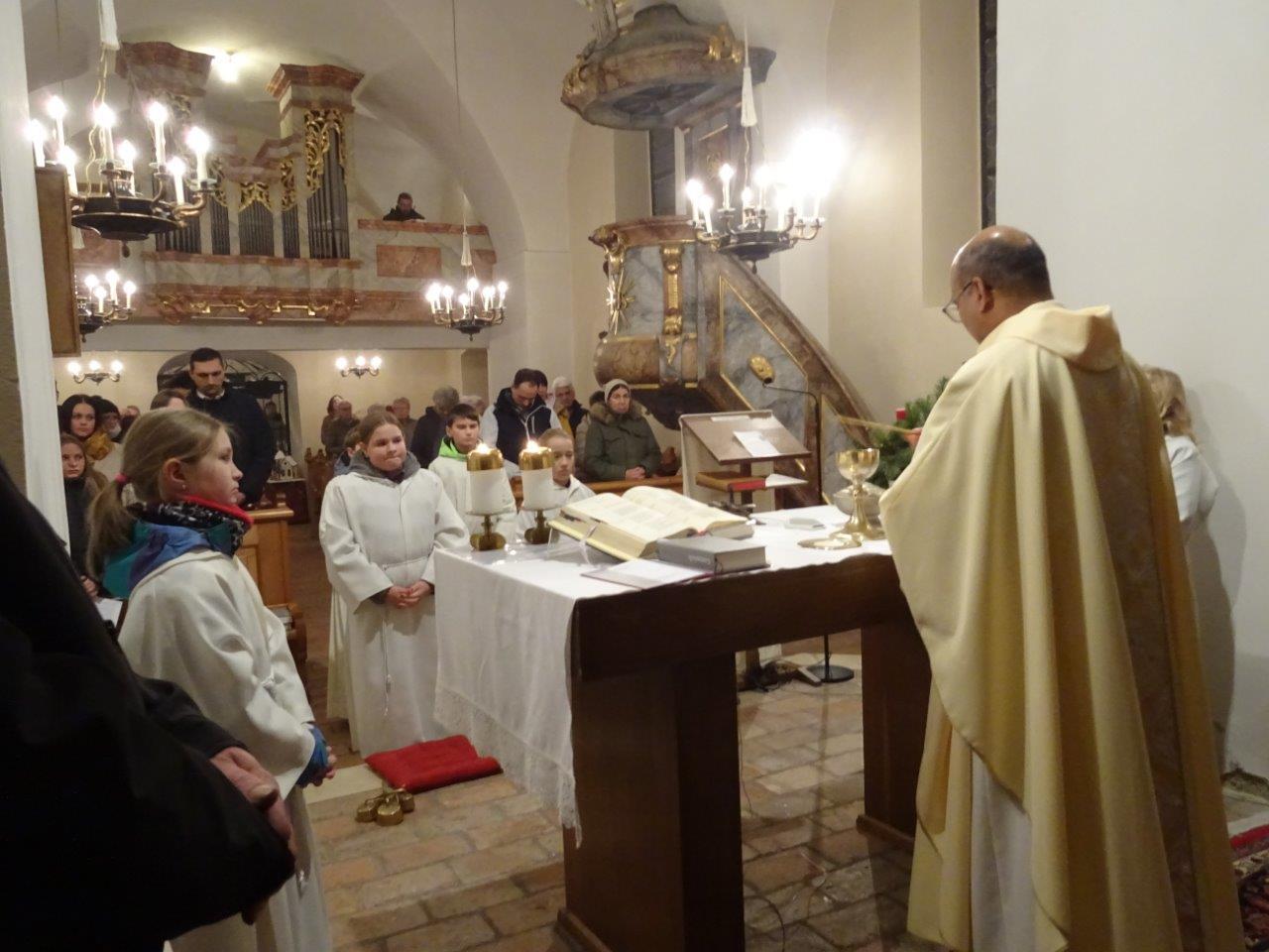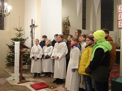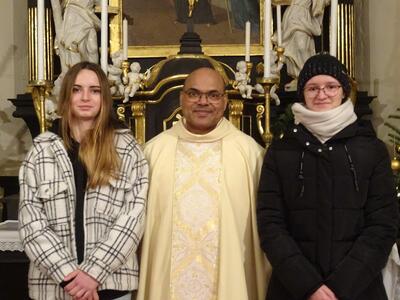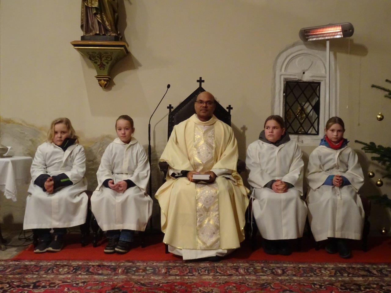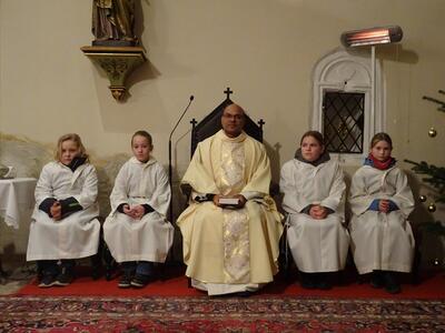 Jahresschlussmesse, Neujahrswünsche der Ministranten und Verabschiedung der Oberministrantinnen Ilvi und Marie.