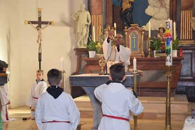 Pater Nicholas feierte den Gottesdienst am Ostersonntag und segnete auch die mitgebrachten Speisen.