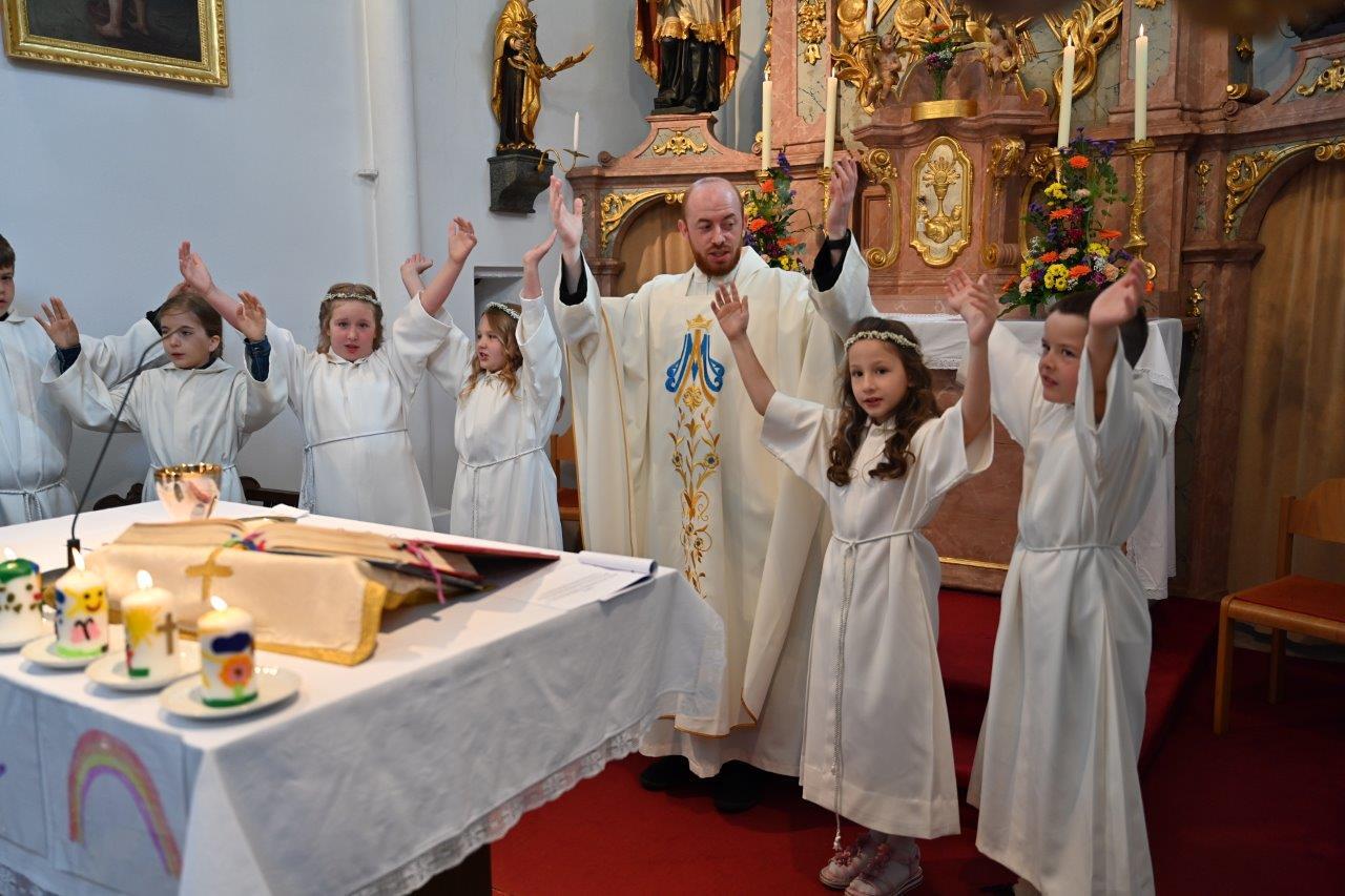 Bilder von der Erstkommunionfeier mit Pater Liviu in der Kirche in Föllim.
