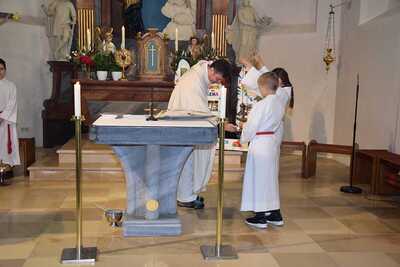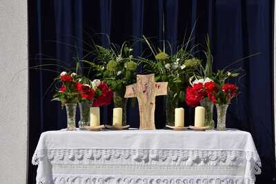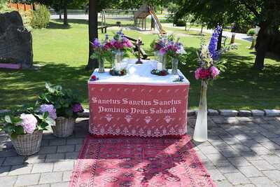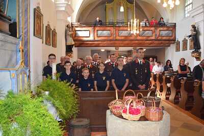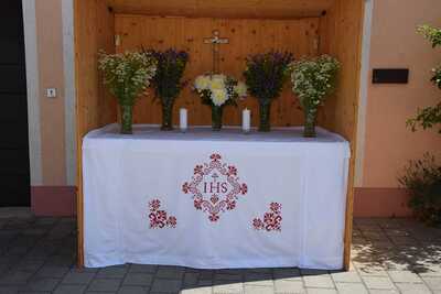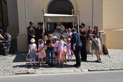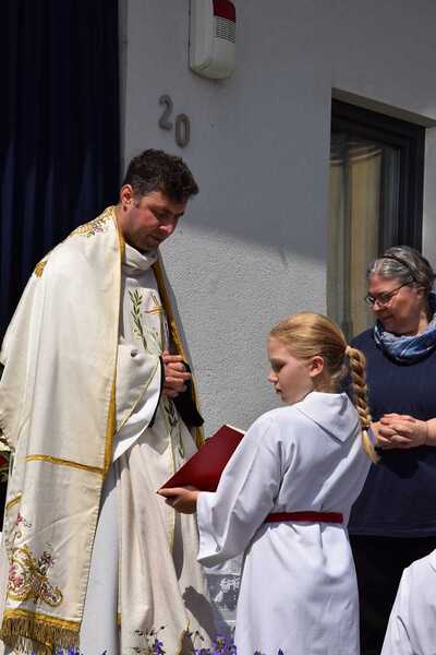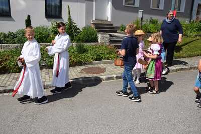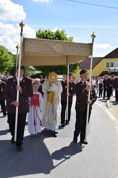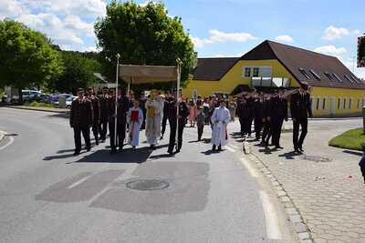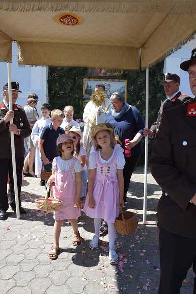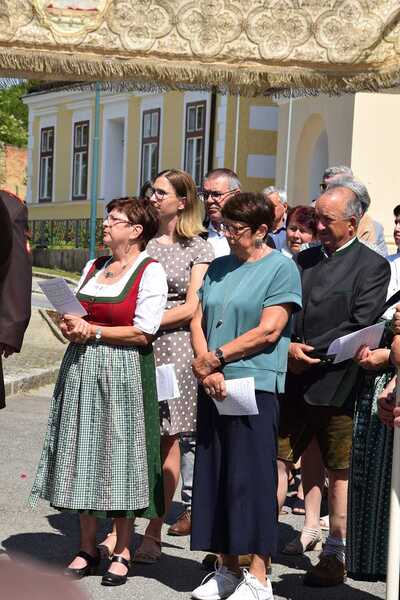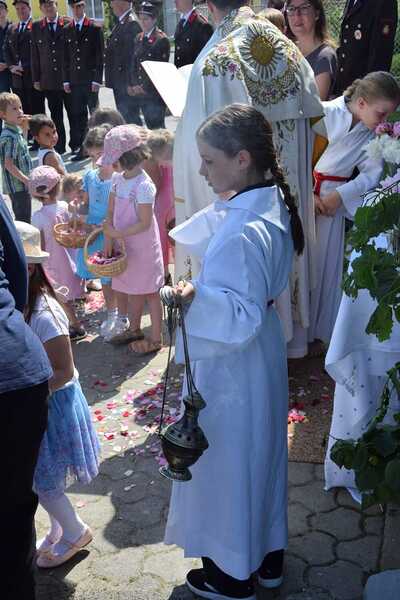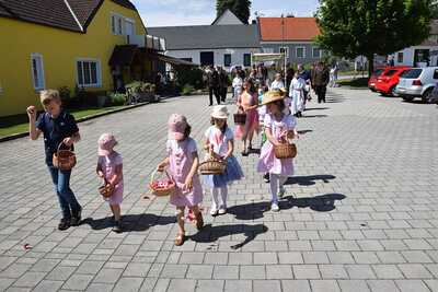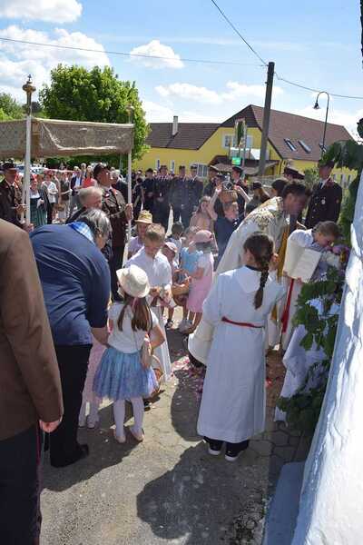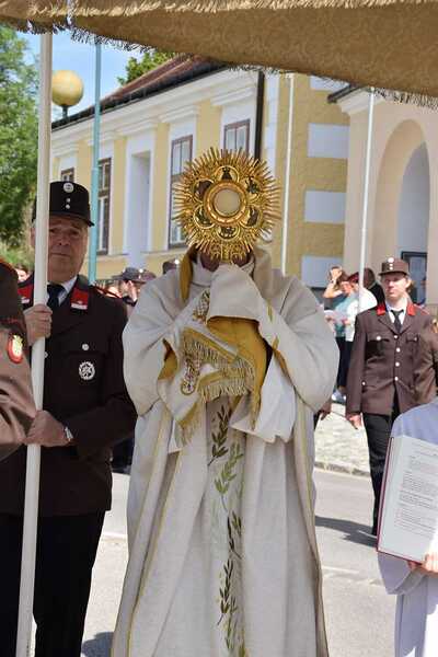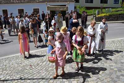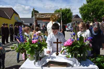 Pater Ionut feierte mit den Orten Wenzersdorf und Zwentendorf das diesjährige Fronleichnamsfest. Nach dem Gottesdienst zog die Prozession zu den geschmückten Ältaren. Die Feuerwehr war beim Fest mit dabei und die Kinder streuten Blumen.