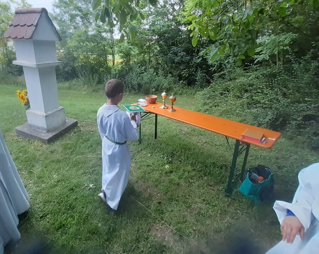 Pater Norbert feierte am 7. Juli 2024 beim Feuerwehrfest in der Kellergasse die Heilige Messe mit der Pfarrgemeinde.
