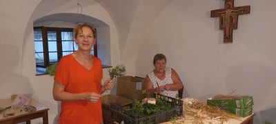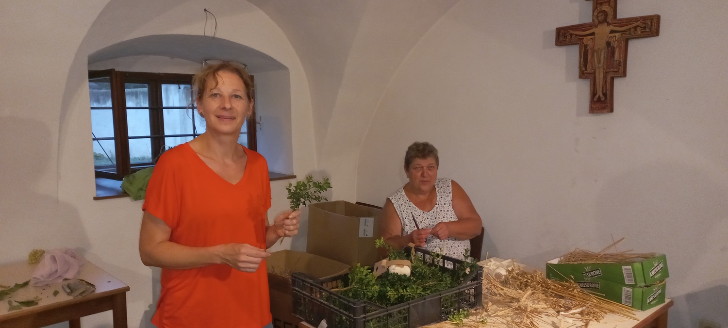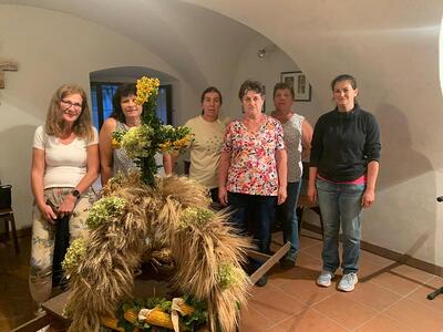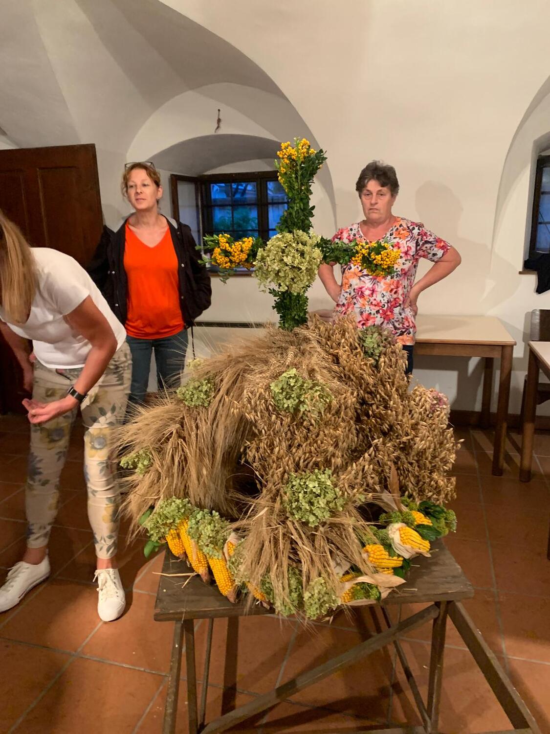 Fotos vom Binden der Erntekrone in der Pfarre Ameis.