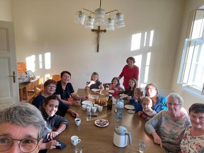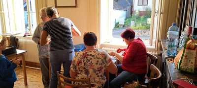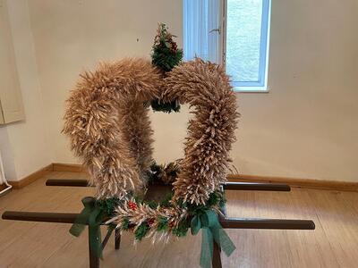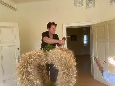 Bilder vom Erntekrone flechten im Pfarrhof in Wenzersdorf.