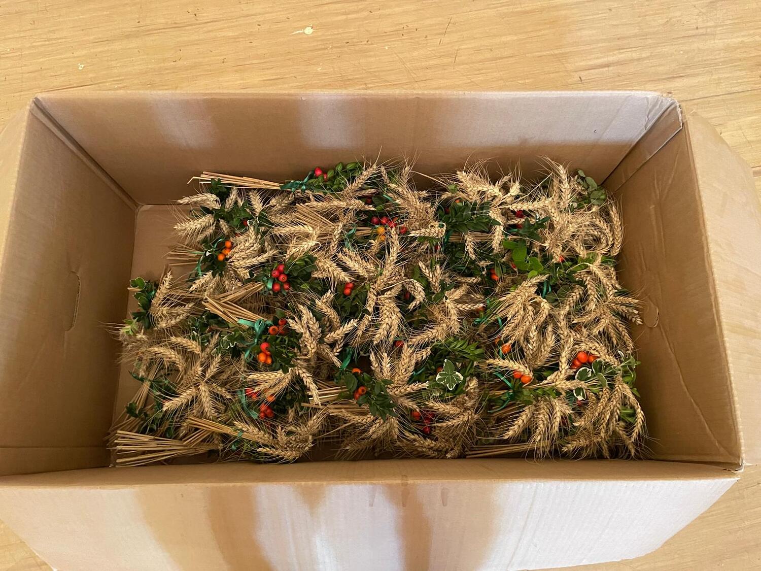 Danke an die Bauern und Bäuerinnen für die Ähren und Danke an alle fleißigen Helferinnen für das Binden der Krone und der Sträußchen.