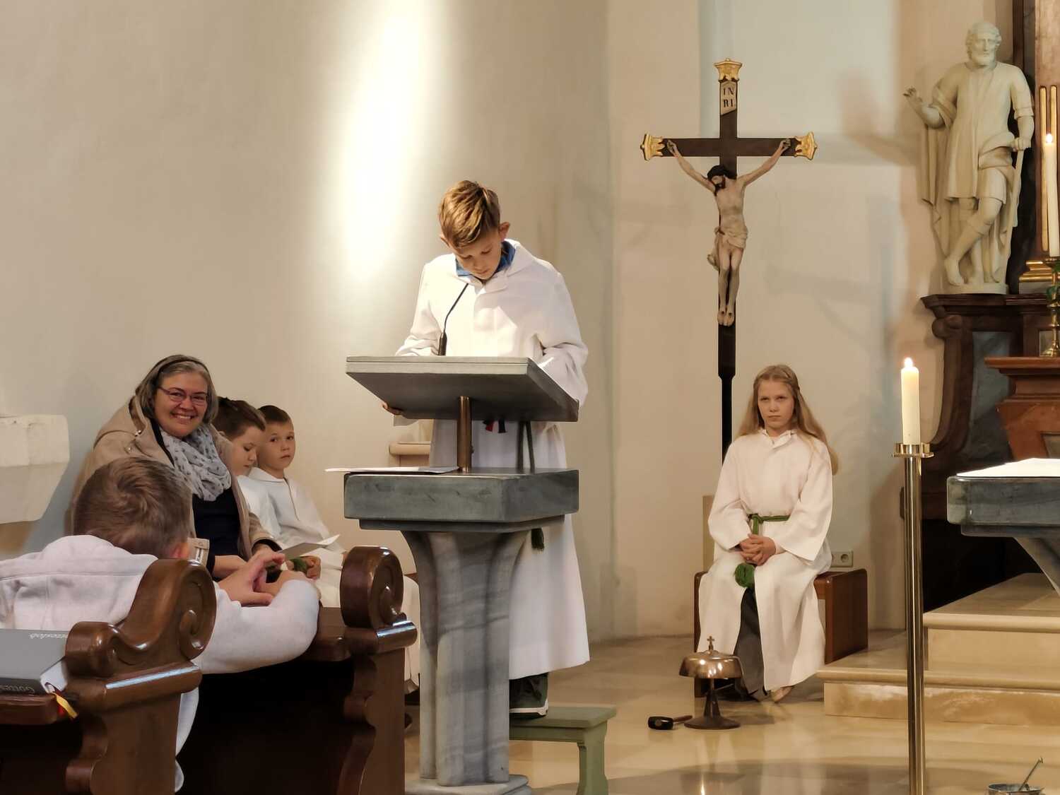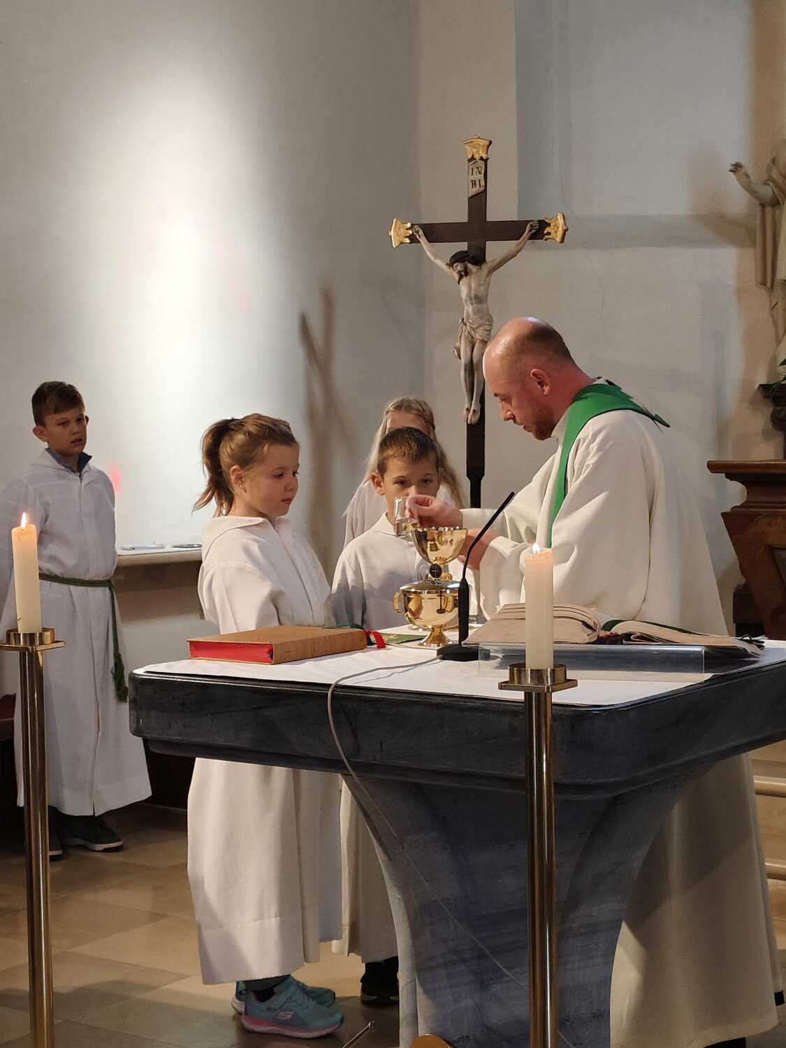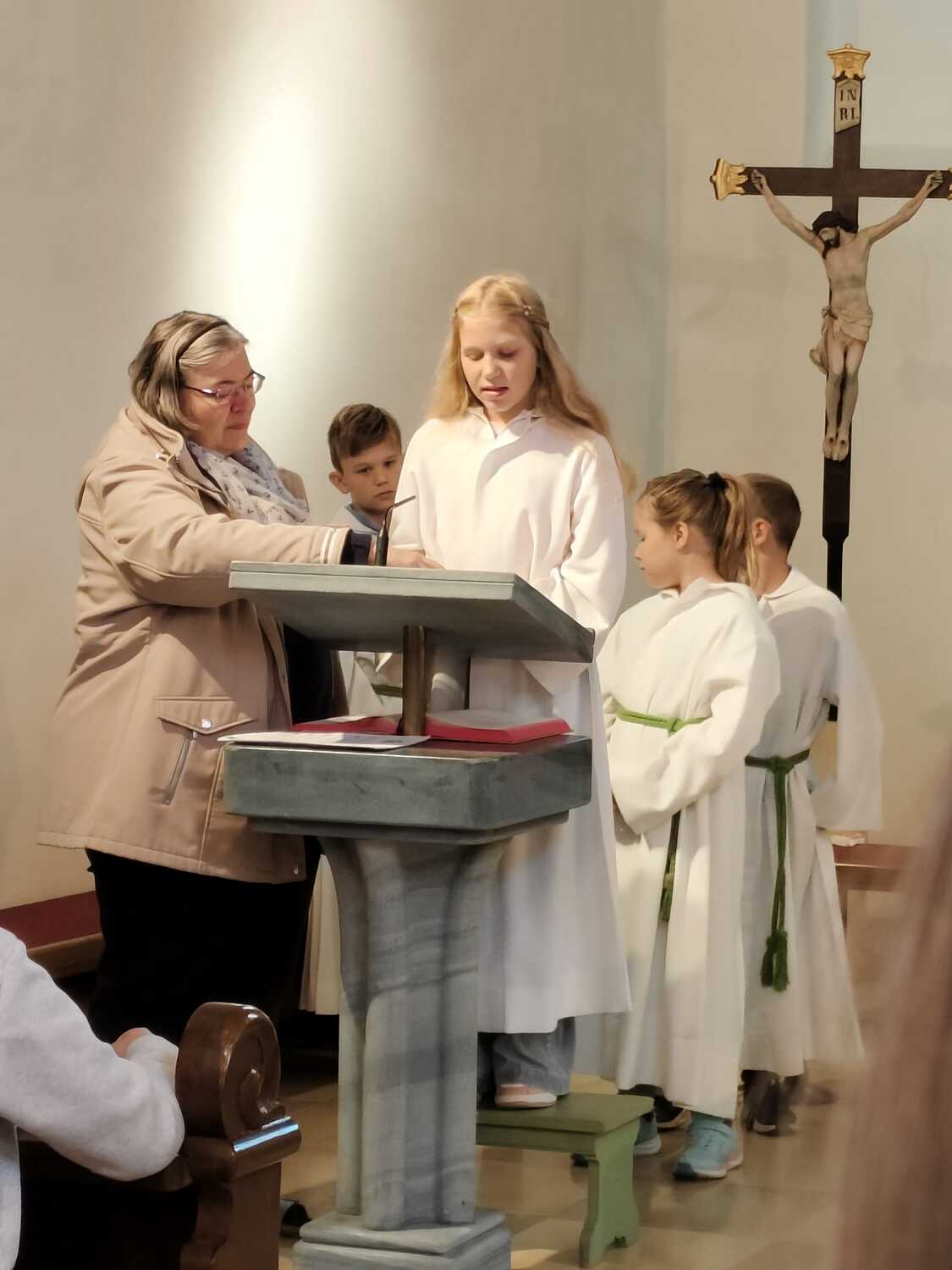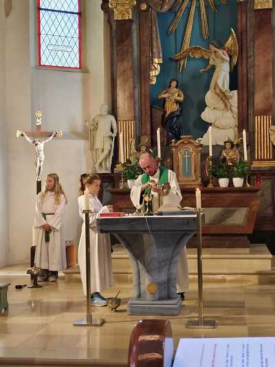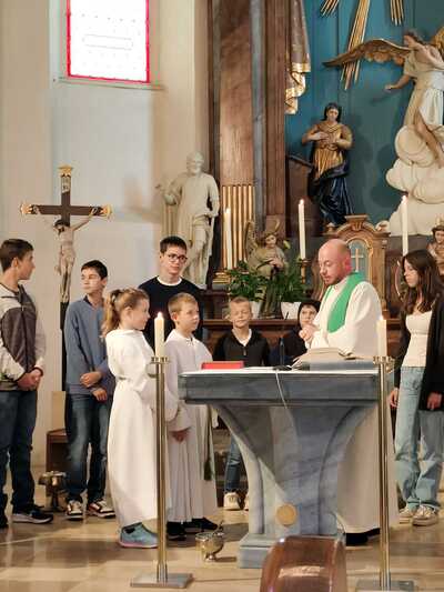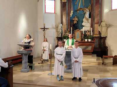 Heute wurde die neue Ministranten Anna-Lena Holzinger und Julian Schulz in die große Ministrantenschar der Pfarre Wenzersdorf aufgenommen. Die "alten" Minis, Julia Bernold und Niklas Marschal, wurden verabschiedet.