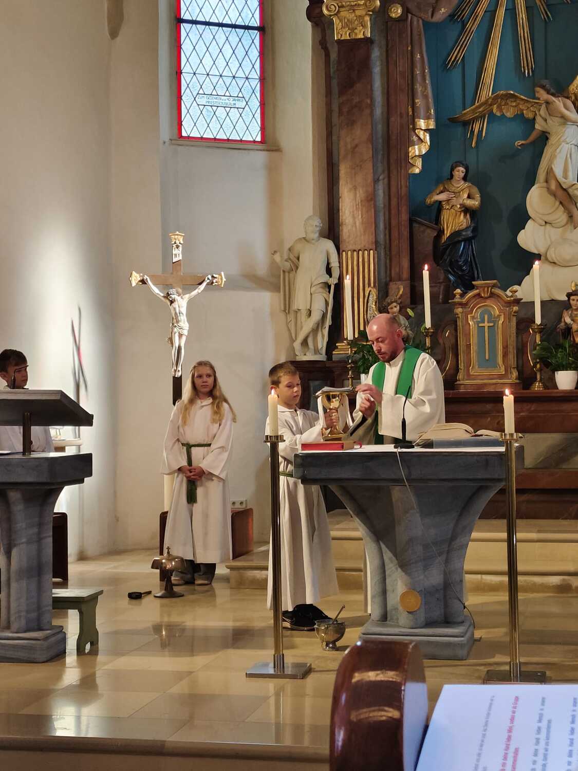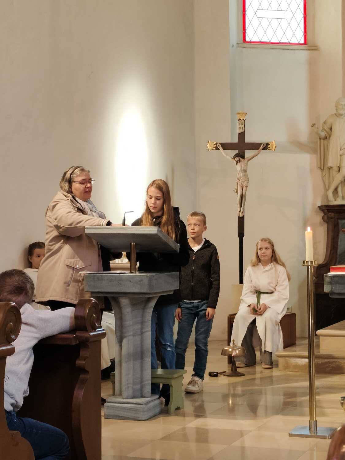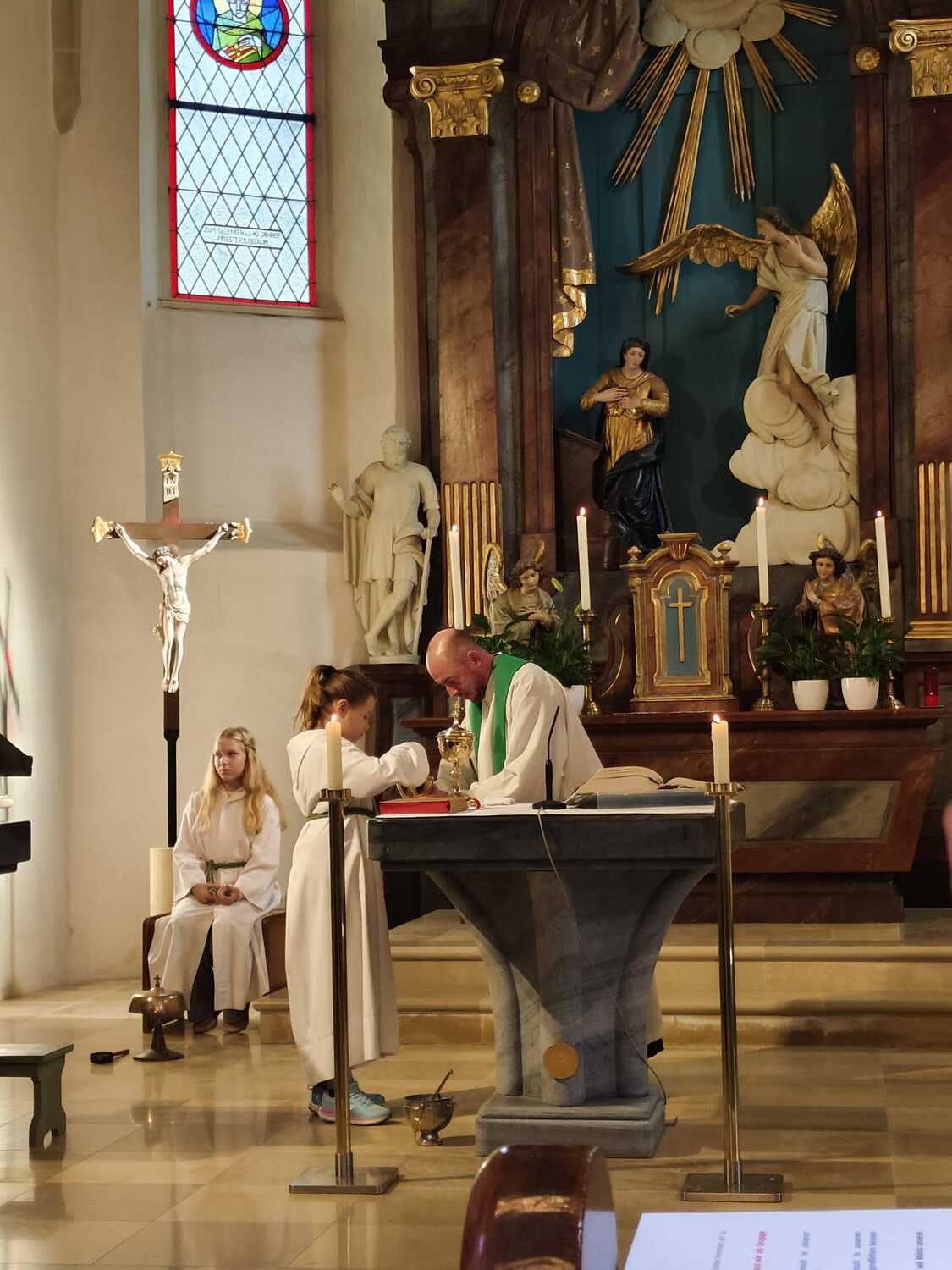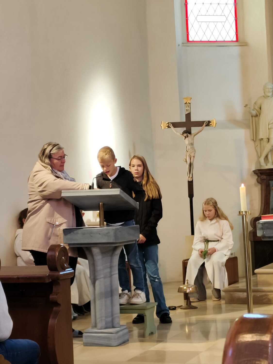 Heute wurde die neue Ministranten Anna-Lena Holzinger und Julian Schulz in die große Ministrantenschar der Pfarre Wenzersdorf aufgenommen. Die "alten" Minis, Julia Bernold und Niklas Marschal, wurden verabschiedet.