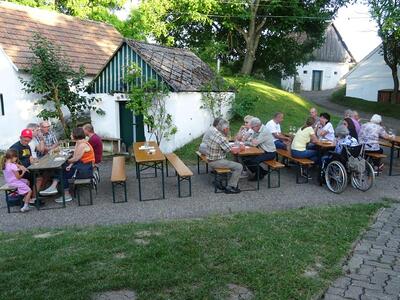 Bilder von der Feldmesse beim Feuerwehrheurigen in der Kellergasse in Zwentendorf. Pater Norbert zelebrierte den Gottesdienst, der vom Generationenchor musikalisch umrahmt wurde.