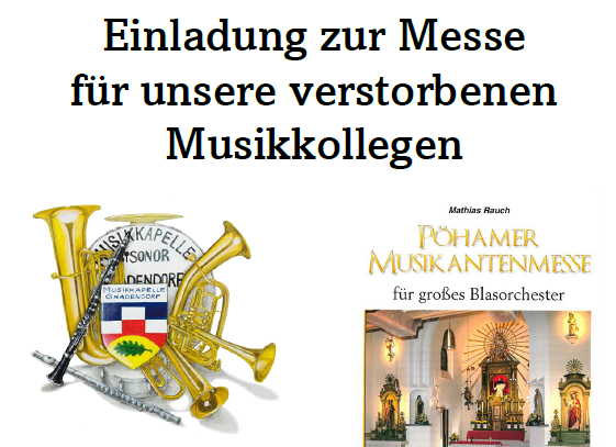 Die Musikkapelle Gnadendorf spielt bei der Sonntagsmesse am 17. November 2024 um 10:00 Uhr die Pöhamer Musikantenmesse in der Pfarrkirche Gnadendorf. mehr