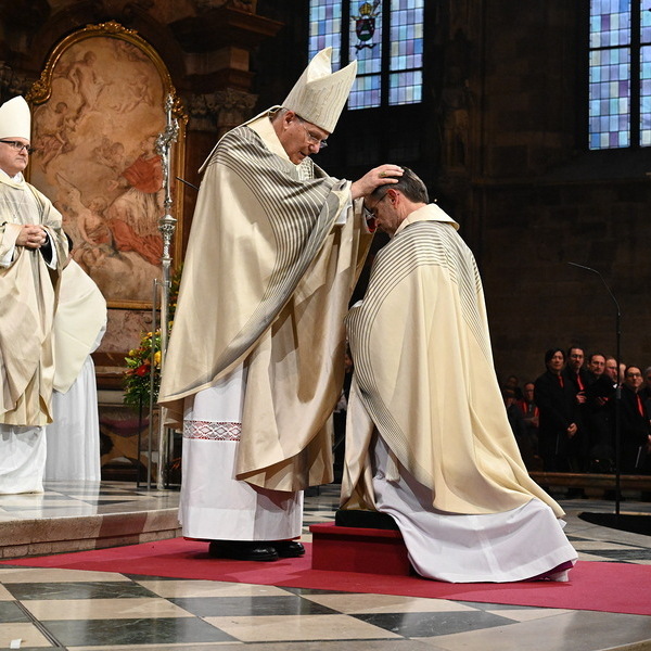 Nach der Weihe mittels Handauflegung durch Kardinal Schönborn und 28 weitere Bischöfe hat Grünwidl die Leitung der Erzdiözese Wien übernommen. mehr