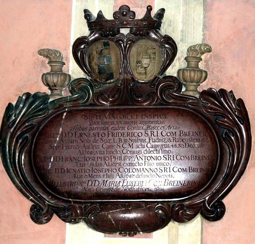 Epitaph von Graf Ernst Friedrich Breuner; in der Gruft vor dem Hochaltar sind Graf Breuner und seine Tochter begraben.