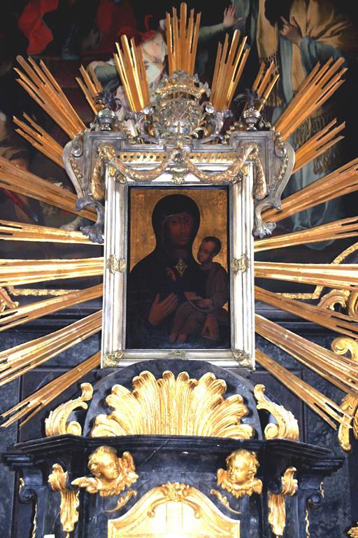 Dieses Marienbild ist eine Kopie der sog. Brünner Madonna, die angeblich vom hl. Lukas gemalt worden sein soll. Kaiser Konstantin der Große brachte es von Jerusalem nach Konstantinopel. Von dort kam es über Mailand in die Prager Burg und fand zuletzt