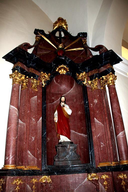 Der linke Seitenaltar mit dem hl. Nepomuk stammt aus der Mitte des 18. Jhdts. und ist ohne Tabernakel. Durch das Fehlen einer Mensa ist er als Altar funktionslos. Im Giebelfeld ist ein flammendes Herz als Ausdruck für die Liebe zu Gott zu sehen.