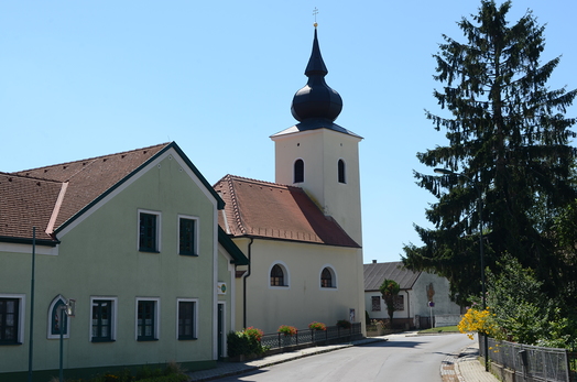 Die Kirche steht unter Denkmalschutz. An das schlichte barocke Langhaus mit Westturm von 1709, Satteldach und Lunettenfenstern schließt ein eingezogener, gerader Chor aus dem 16. Jahrhundert an. Der westlichen Giebelfront ist ein dreigeschossiger Turm mit rundbogigen Schallfenstern und Zwiebelhelm vorgestellt. An der Südseite liegt die Sakristei. Das zweijochige Langhaus ist innen durch eine Stichkappentonne auf Doppelpilastern mit Kämpferzone und bemalten Gurten gedeckt und hat im Gewölbe Putzfelder. Darunter erhebt sich im Westen eine hölzerne Orgelempore aus der Zeit um 1800 sowie ein eingezogener, rundbogiger Triumphbogen. Der erhöhte, zweijochige Chor mit Stichkappentonne hat im östlichen Joch ein fünfteiliges Rippengewölbe auf Halbsäulenvorlagen mit Basen und einfachen Kapitellen vom Ende des 16. Jahrhunderts. Die Sakristei ist durch eine Stichkappentonne mit Putzfeldern und Gurtbogen gewölbt.