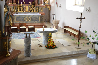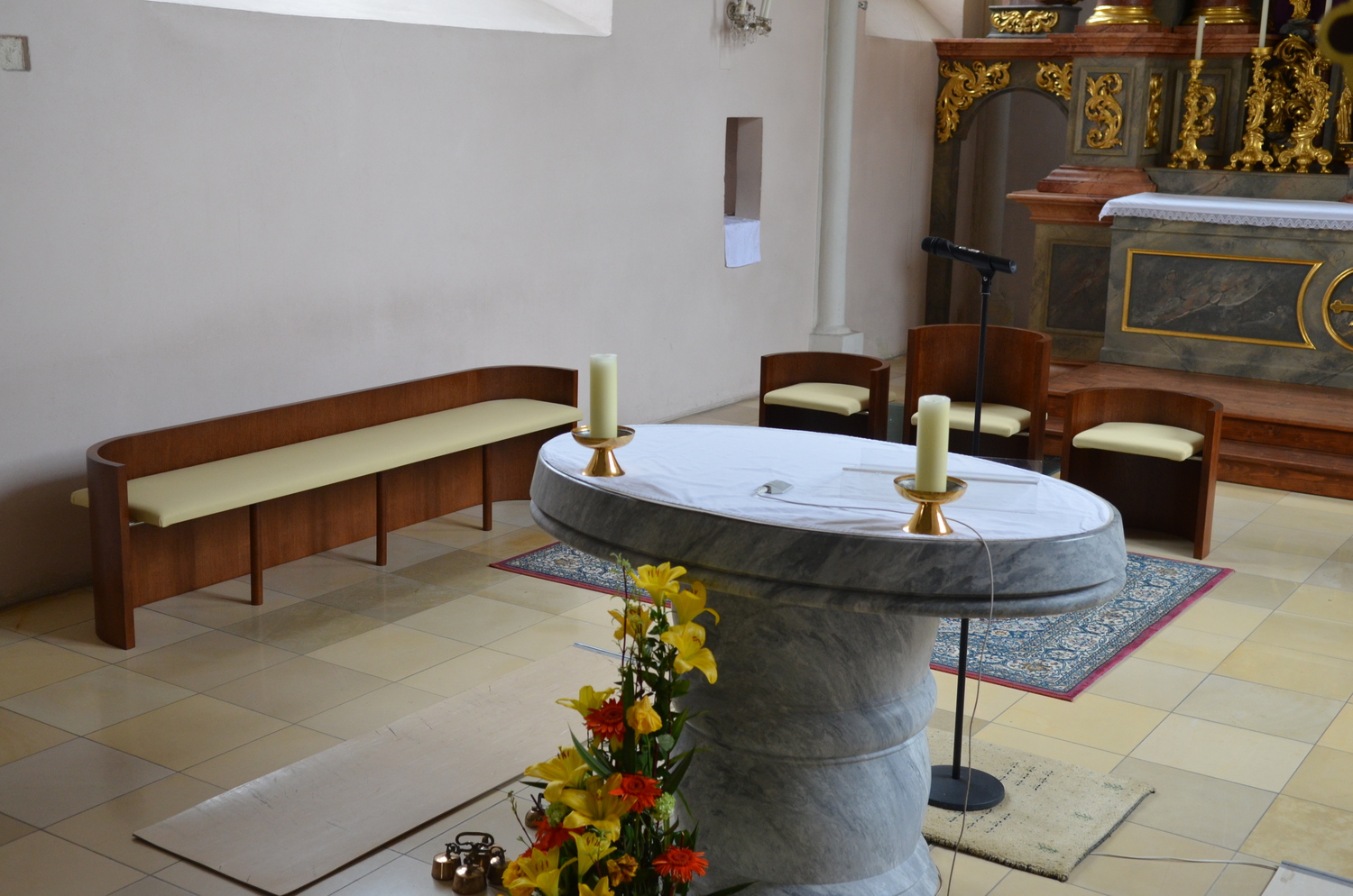 Mit der neuen Sessio werden, mehr als 13 Jahre nach der Altarweihe, die Umgestaltungsarbeiten im Presbyterium unserer Pfarrkirche abgeschlossen.