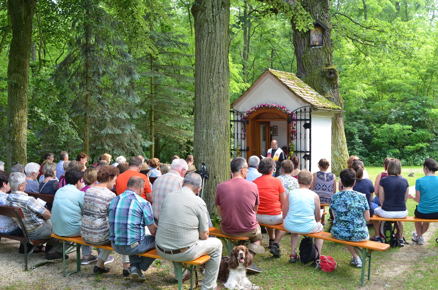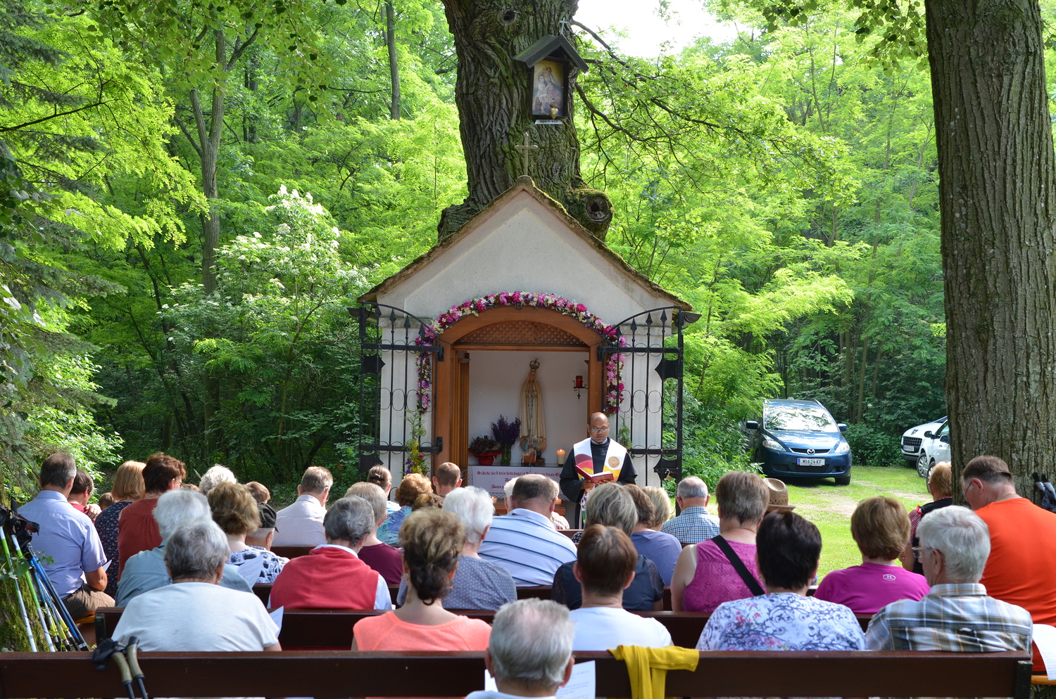 Gemeinsame Maiandacht der Pfarren Asparn, Gnadendorf, Michelstetten und Wenzersdorf bei der Bildeichenkapelle.