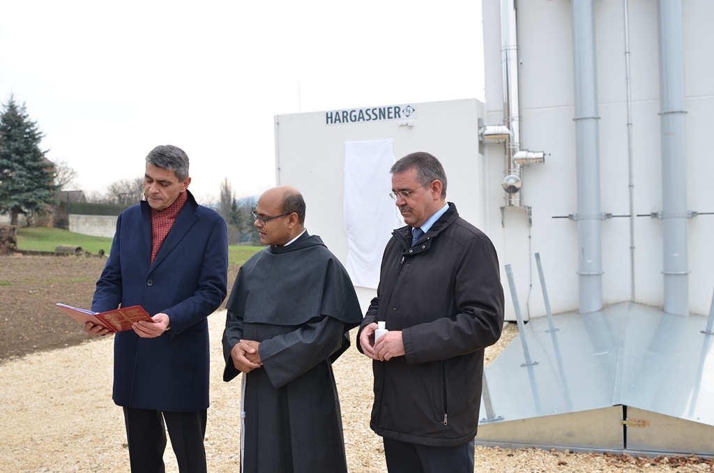 Pater Nicholas segnete die Nahwärmeanlage im Rahmen der feierlichen Eröffnung.