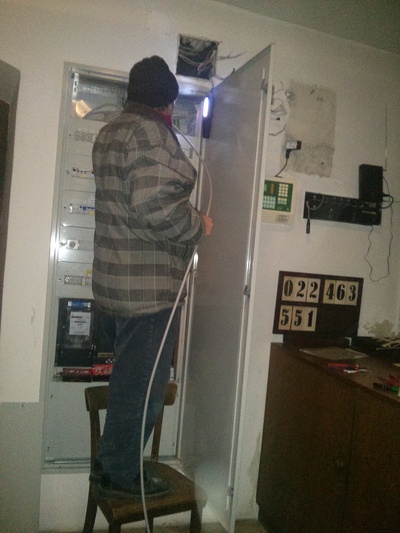 Am 28. November 2013 wurde die neue Elektrozuleitung für die Glockensteuerung in den Kirchturm eingezogen.