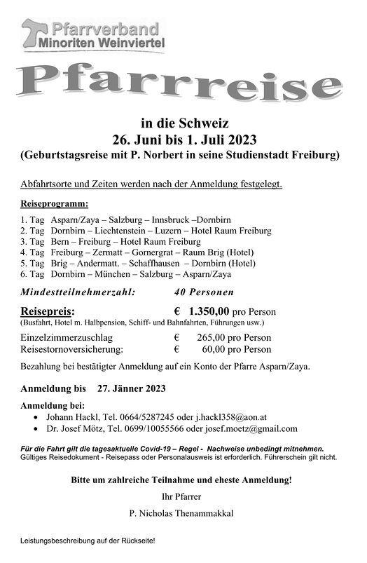 Geburtstagsreise mit Pater Norbert in seine Studienstadt Freiburg. - Anmeldung bis 27. Jänner 2023. --> Anmeldefrist bis 15. Feburar 2023 verlängert!